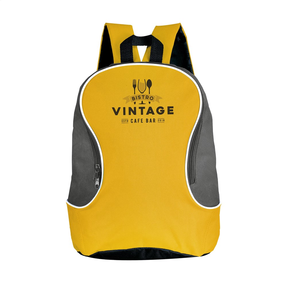 Rugzak van 600D polyester met royaal opbergvak met dubbele ritssluiting, verstelbare, gewatteerde schouderriemen en ophanglus. Inhoud ca. 12 liter.