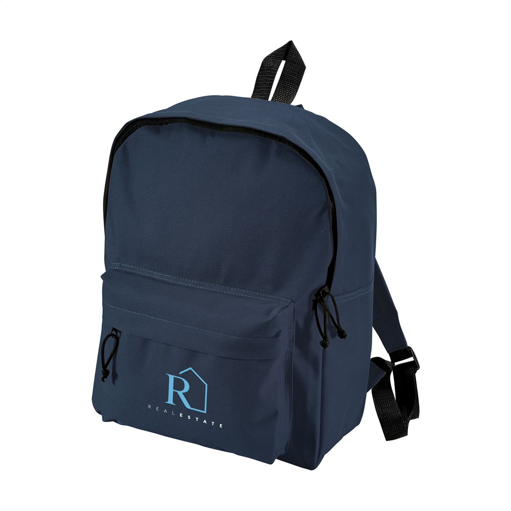 Rugzak van 600D polyester met royaal hoofdvak, voorvak, verstelbare, gewatteerde schouderriemen en waterafstotende binnenzijde. Inhoud ca. 12 liter.