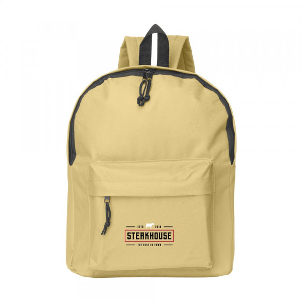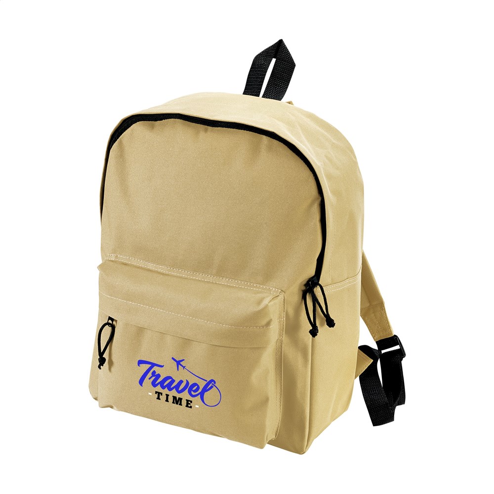 Rugzak van 600D polyester met royaal hoofdvak, voorvak, verstelbare, gewatteerde schouderriemen en waterafstotende binnenzijde. Inhoud ca. 12 liter.