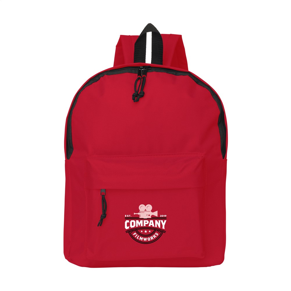 Rugzak van 600D polyester met royaal hoofdvak, voorvak, verstelbare, gewatteerde schouderriemen en waterafstotende binnenzijde. Inhoud ca. 12 liter.