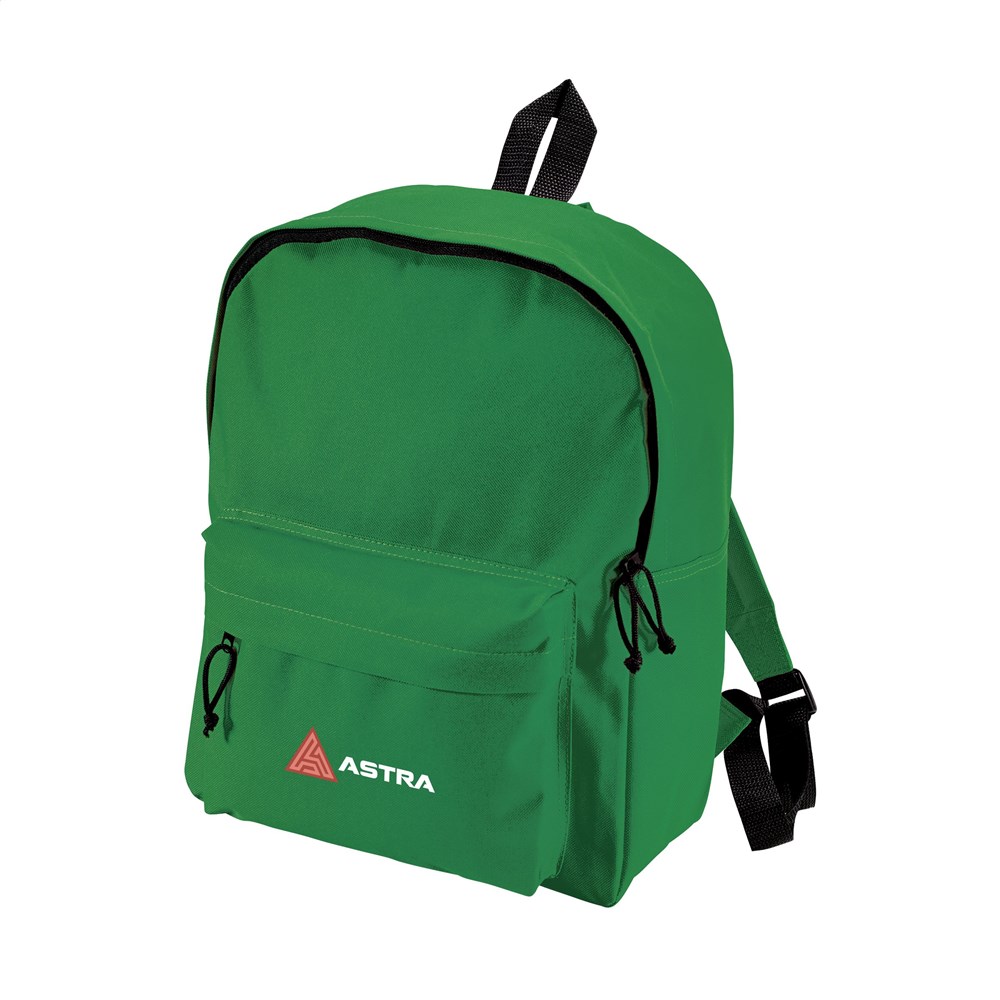 Rugzak van 600D polyester met royaal hoofdvak, voorvak, verstelbare, gewatteerde schouderriemen en waterafstotende binnenzijde. Inhoud ca. 12 liter.