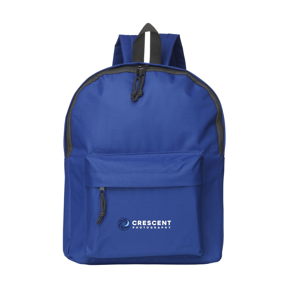 Rugzak van 600D polyester met royaal hoofdvak, voorvak, verstelbare, gewatteerde schouderriemen en waterafstotende binnenzijde. Inhoud ca. 12 liter.