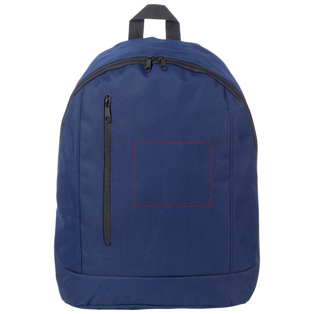 Rugzak met groot hoofdvak en rits inclusief binnenvakje. Voorvak met verticale rits. Verstelbare gevoerde schouderbanden en verstevigde handgreep aan de bovenkant.