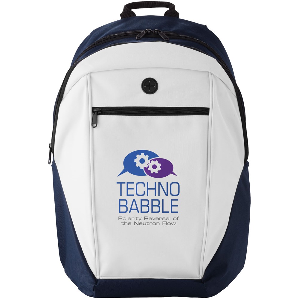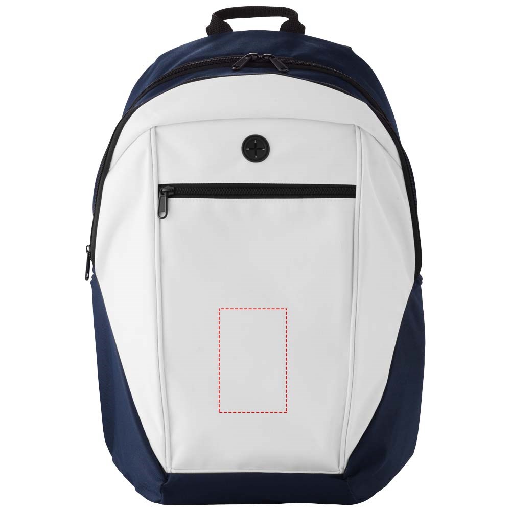 Groot hoofdvak met ritssluiting. Middenvak met ritssluiting en ritsvakken aan de binnenzijde. Voorvak met ritssluiting en oortelefoondoorgang. Verstelbare, gecapitonneerde schouderbanden en verstevigde topgreep.