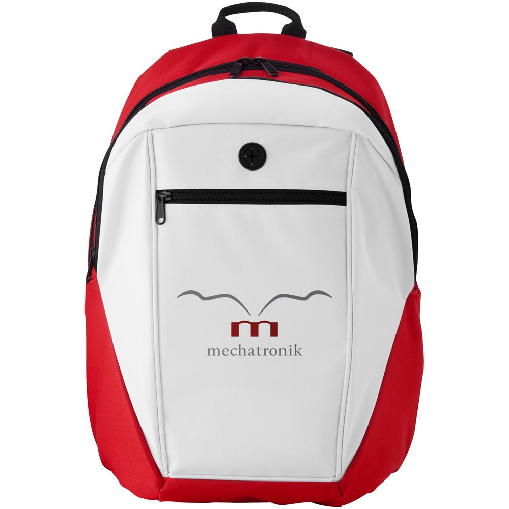 Groot hoofdvak met ritssluiting. Middenvak met ritssluiting en ritsvakken aan de binnenzijde. Voorvak met ritssluiting en oortelefoondoorgang. Verstelbare, gecapitonneerde schouderbanden en verstevigde topgreep.