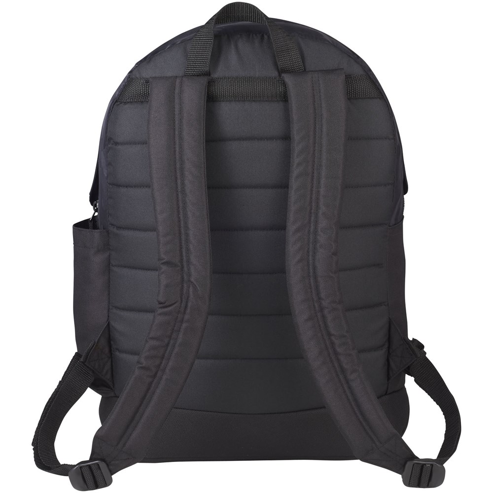 De buitenkant van de rugzak is gemaakt van duurzaam geweven materiaal met voering. Voorzien van een open hoofdvak voor boeken en mappen met regenflap en een snel toegankelijk voorvak. Voorzien van voorgevormde schouderbanden, een padded rugpand, een groot zijvak om een waterflesje in op te bergen, en een draaglus. Capaciteit: 26 liter.
