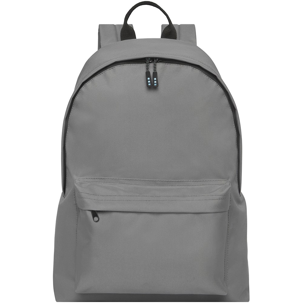 Duurzame GRS-gecertificeerde RPET rugzak gemaakt met 80% gerecyclede materialen. Voorzien van een groot hoofdvak met rits met een klein vak met rits aan de binnenkant en een vak met rits aan de voorkant. Wordt geleverd met comfortabele schouderbanden en een hengsel.