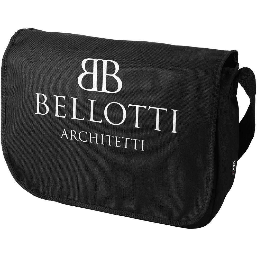 Documententas met verstelbare schouderband, flap met klittenbandsluiting, grote hoofdvakken, klein ritsvakje en diverse accessoirevakken.