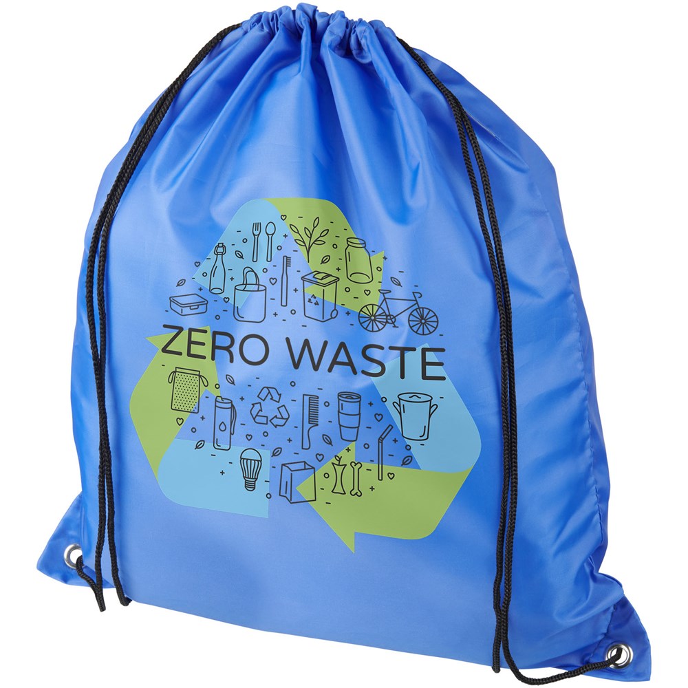 Duurzame tas, gemaakt van 100% gerecycled, van consumenten afkomstig kunststof dat bijdraagt aan de vermindering van kunststofafval. Elke zak is gemaakt van 3,5 gerecyclede petflessen. Groot hoofdvak met koordsluiting in de kleur zwart. Capaciteit: 9 liter, geschikt voor een gewicht tot 5 kg.