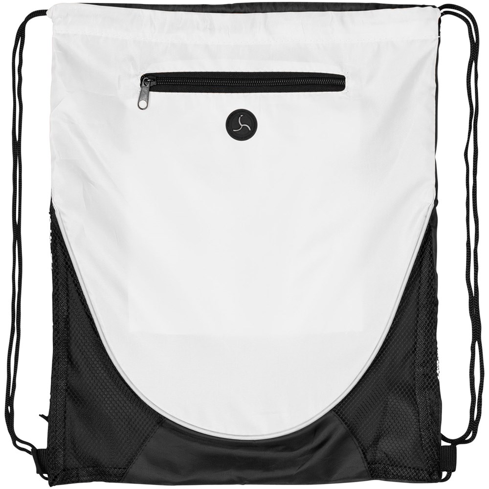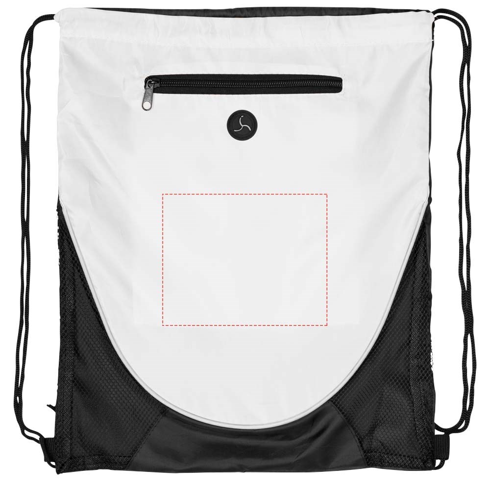 Polyester tas met hoofdvak en trekkoordsluiting. Voorvak met ritssluiting en oortelefoondoorgang. Oordopjes niet inbegrepen.