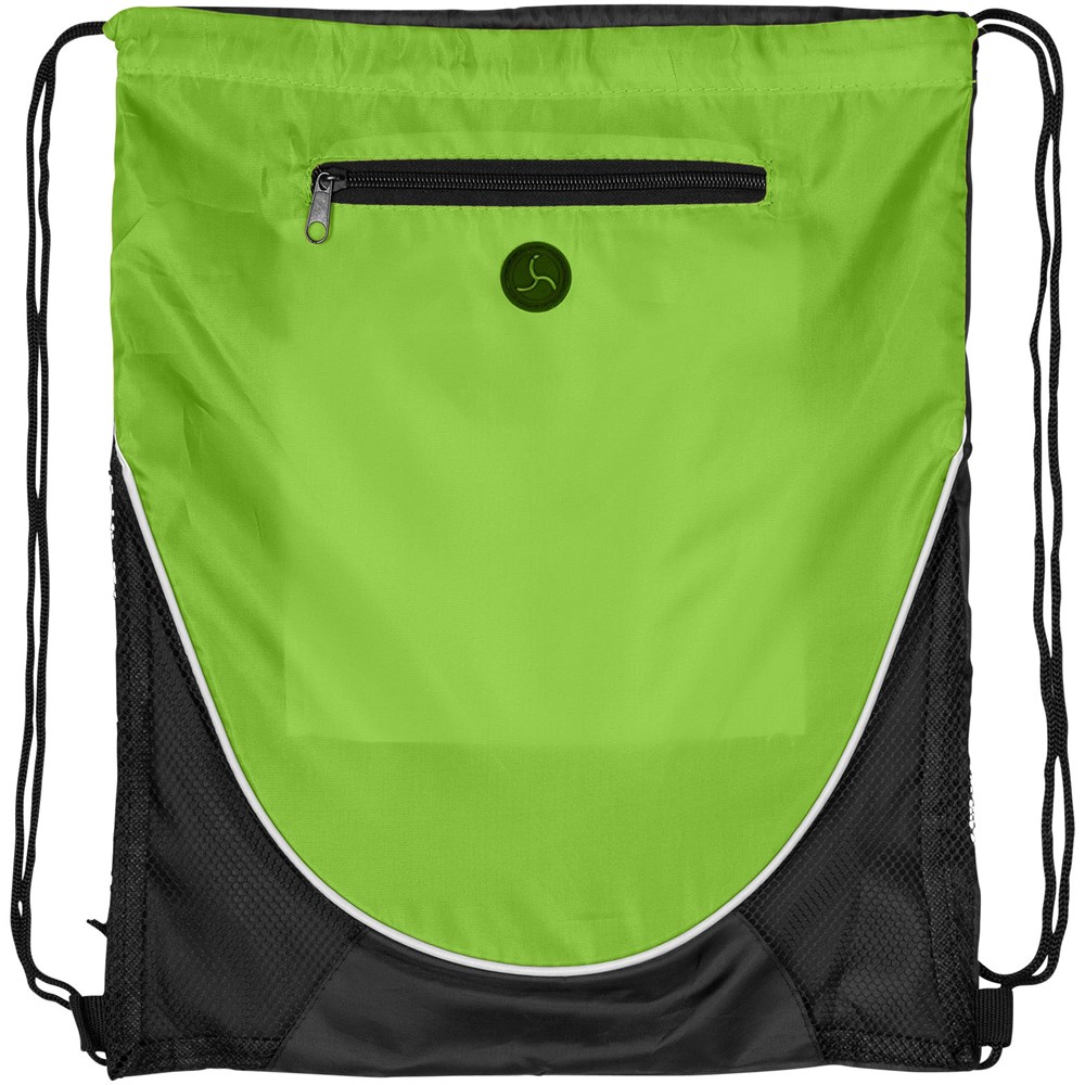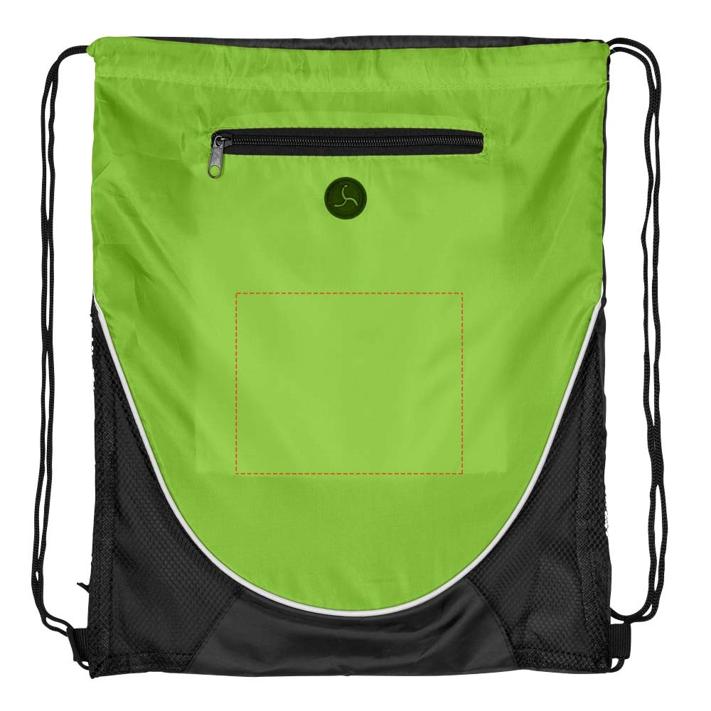 Polyester tas met hoofdvak en trekkoordsluiting. Voorvak met ritssluiting en oortelefoondoorgang. Oordopjes niet inbegrepen.