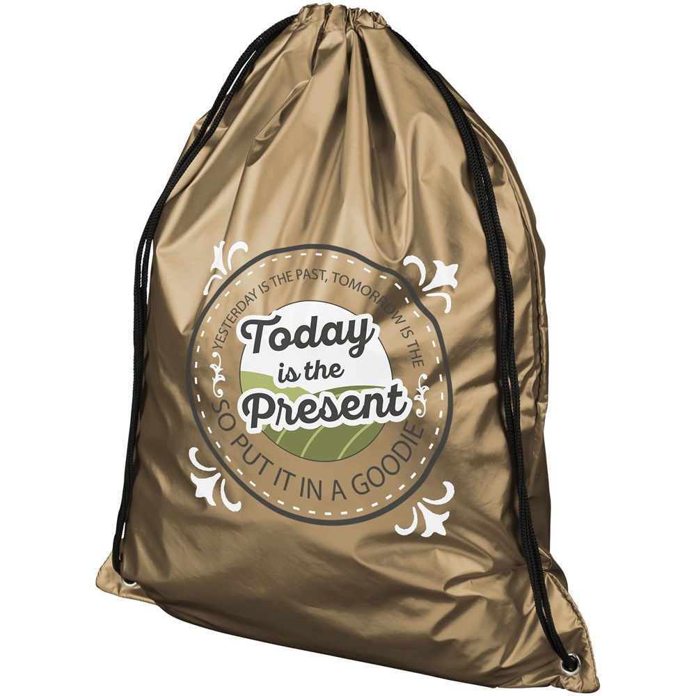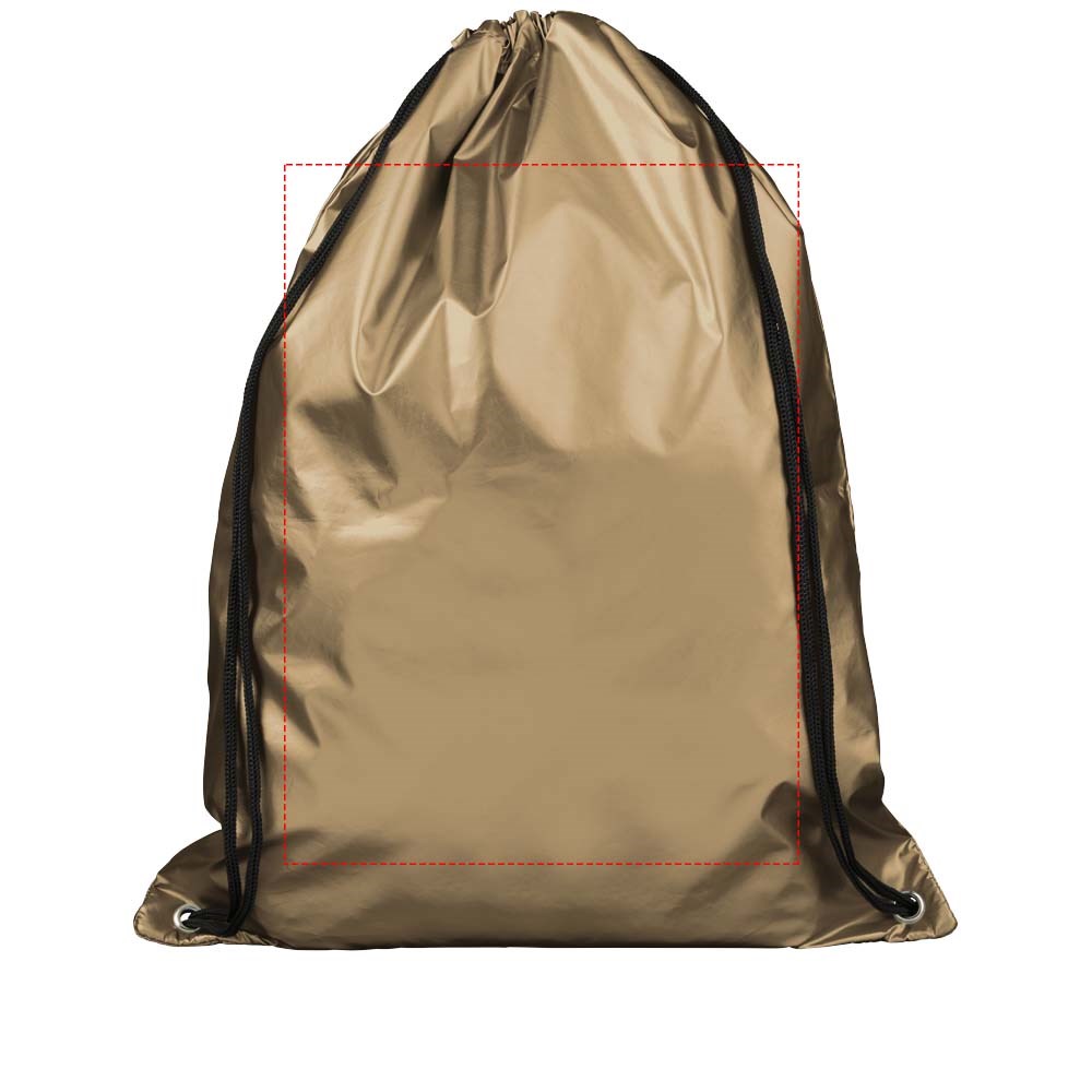 Groot hoofdvak met trekkoordsluiting. Ontwerp met een glanzende afwerking. Capaciteit: 9 liter, geschikt voor een gewicht tot 5 kg.