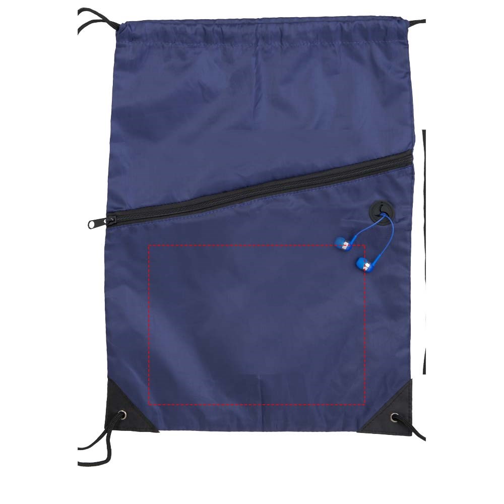 Groot hoofdvak met koordsluiting in de kleur zwart. Voorzien van een voorvak met rits, een ingang voor oordopjes en versterkte hoeken. Geschikt voor een gewicht tot 5kg.