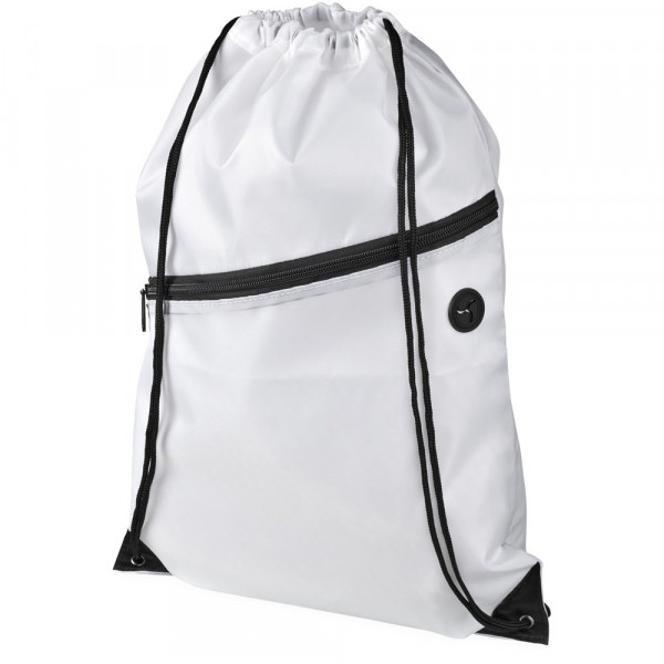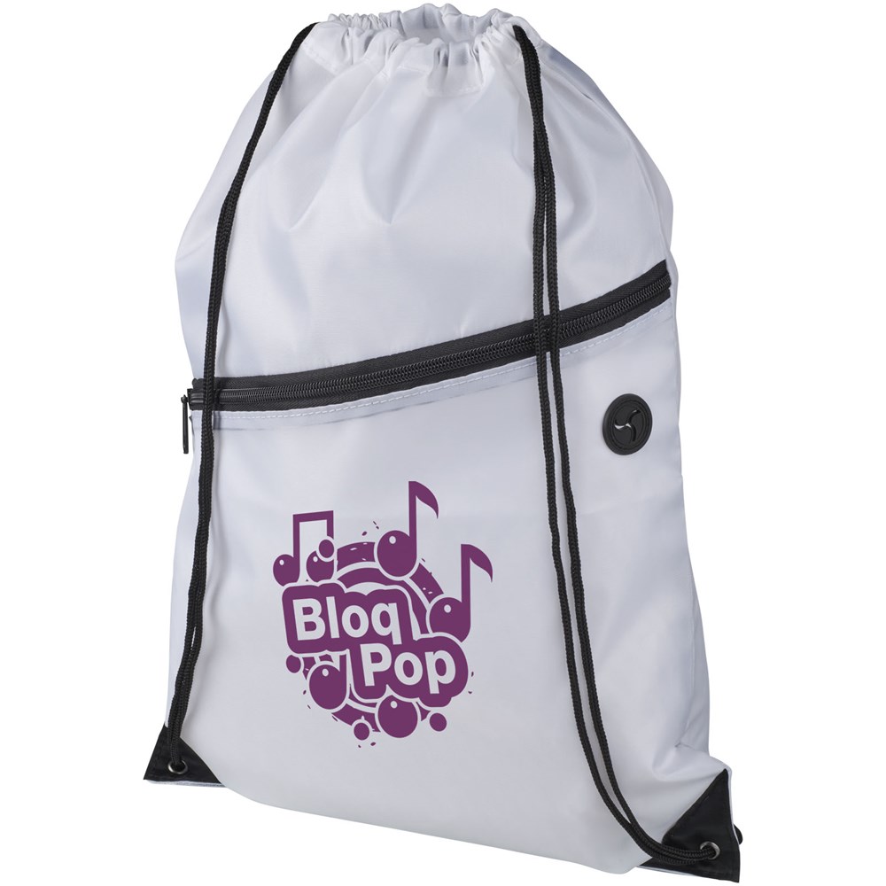 Groot hoofdvak met koordsluiting in de kleur zwart. Voorzien van een voorvak met rits, een ingang voor oordopjes en versterkte hoeken. Geschikt voor een gewicht tot 5kg.