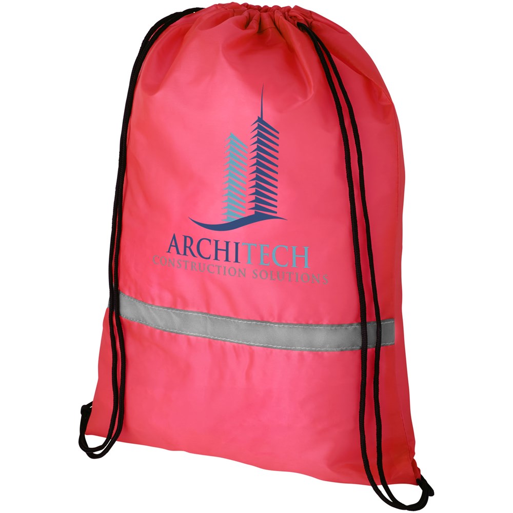 Rugzak met trekkoordsluiting met EN 13356-certificering. Groot hoofdvak met trekkoordsluiting. Voorzien van een reflecterende voorstrip en versterkte hoeken. Geschikt voor een gewicht tot 5 kg. .