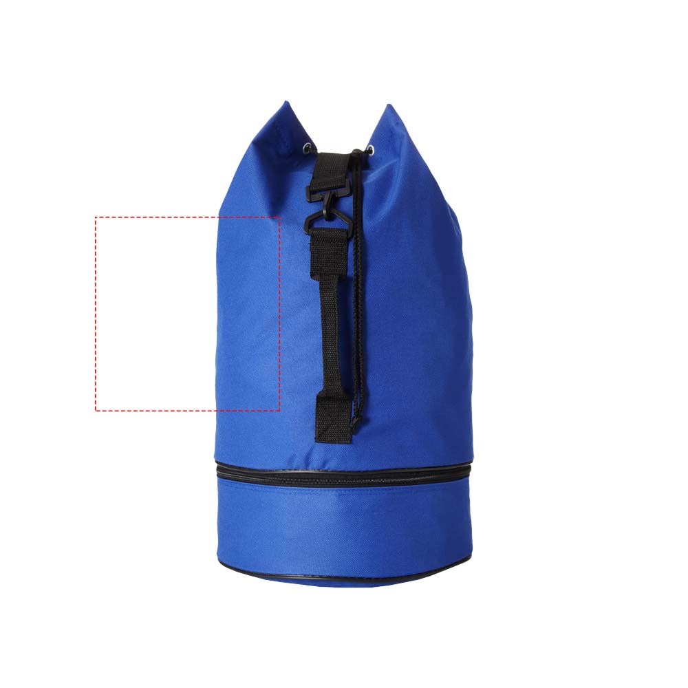 Plunjezak met trekkoordsluiting, zijgreep en verstelbare schouderband. Apart ondervak met rits.