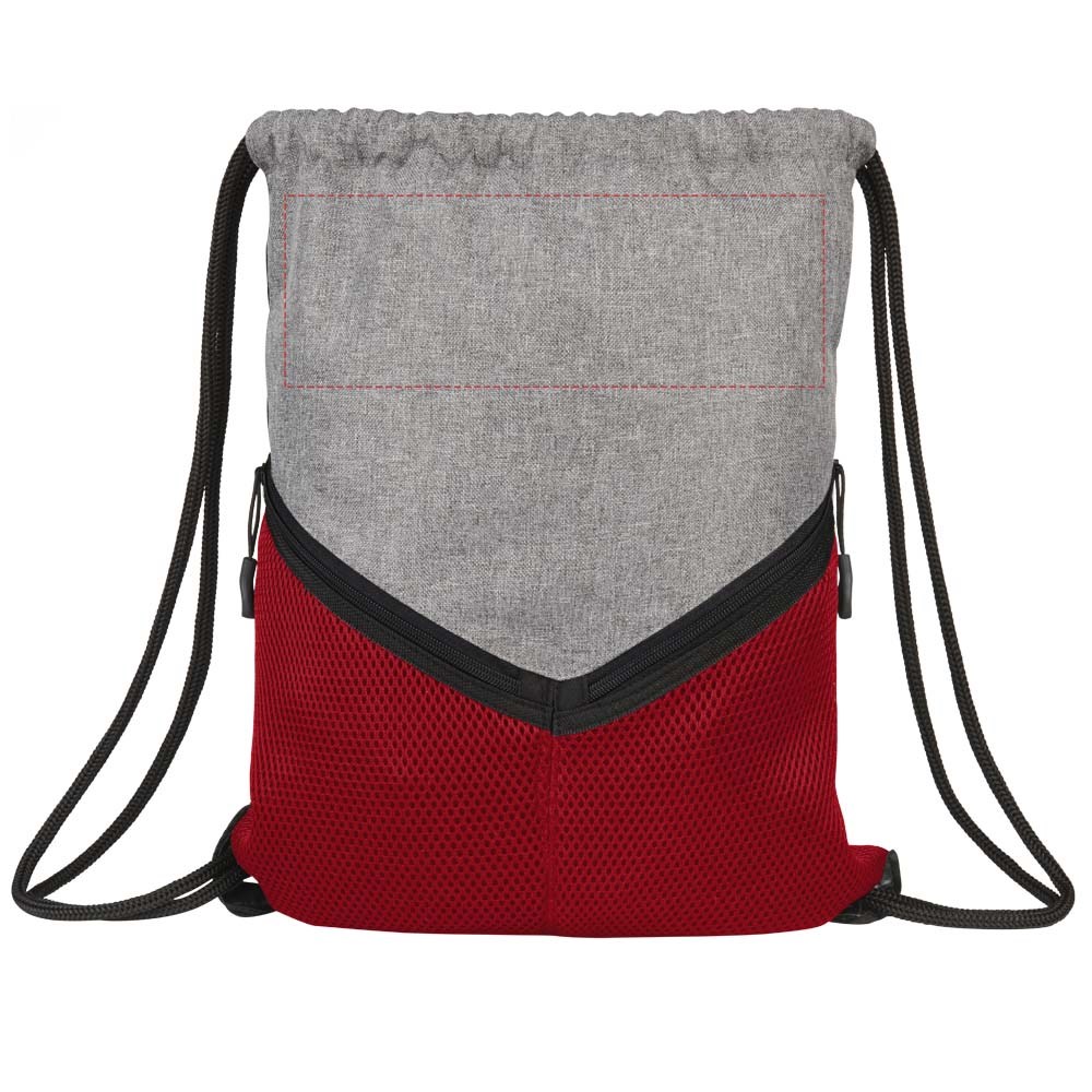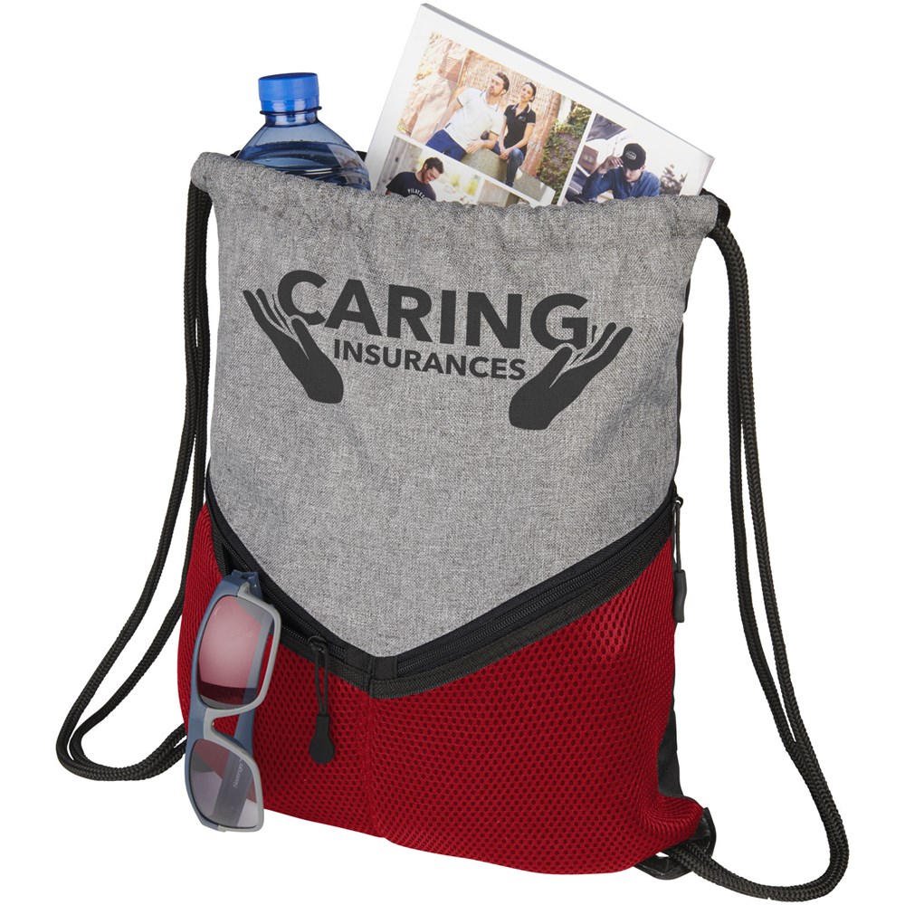 Een sportieve rugzak met een koordsluiting, groot hoofdvak en twee meshvakken met rits.