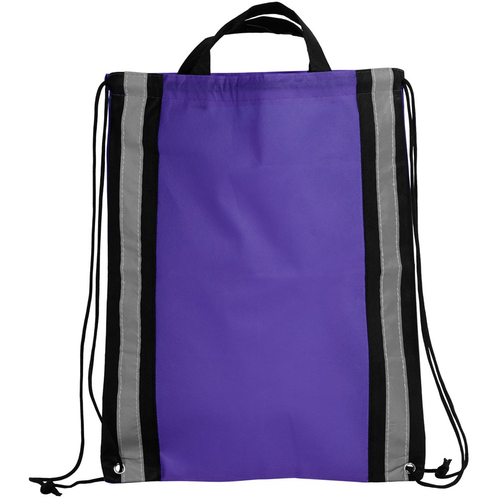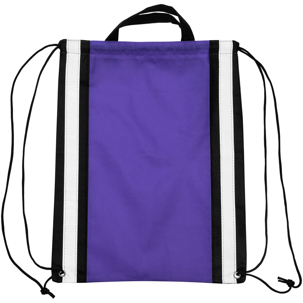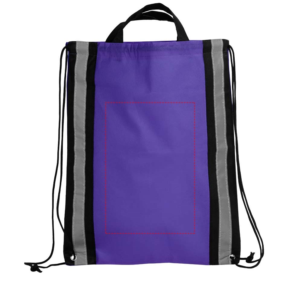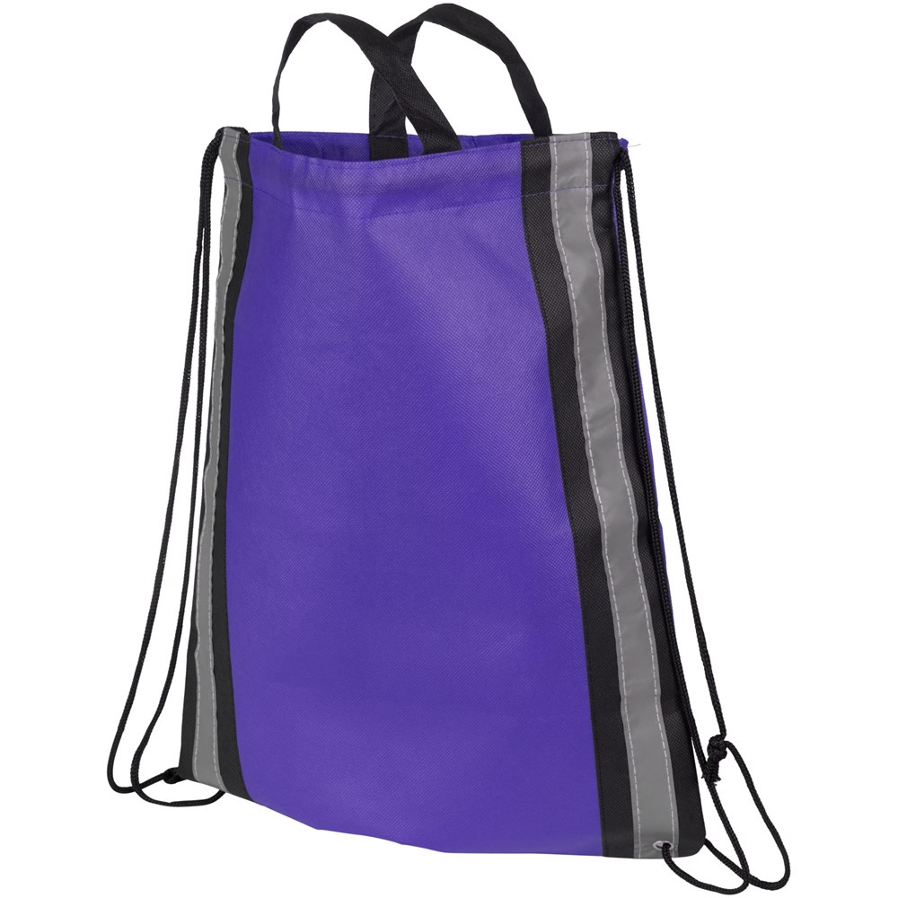 Deze non woven PP tas met trekkoord heeft reflecterende stroken aan beide kanten, ideaal om je merk extra zichtbaarheid te geven.