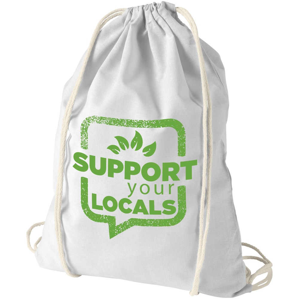 Katoenen tas met groot hoofdvak met katoenen trekkoordsluiting. Als schoudertas en als rugzak te dragen.