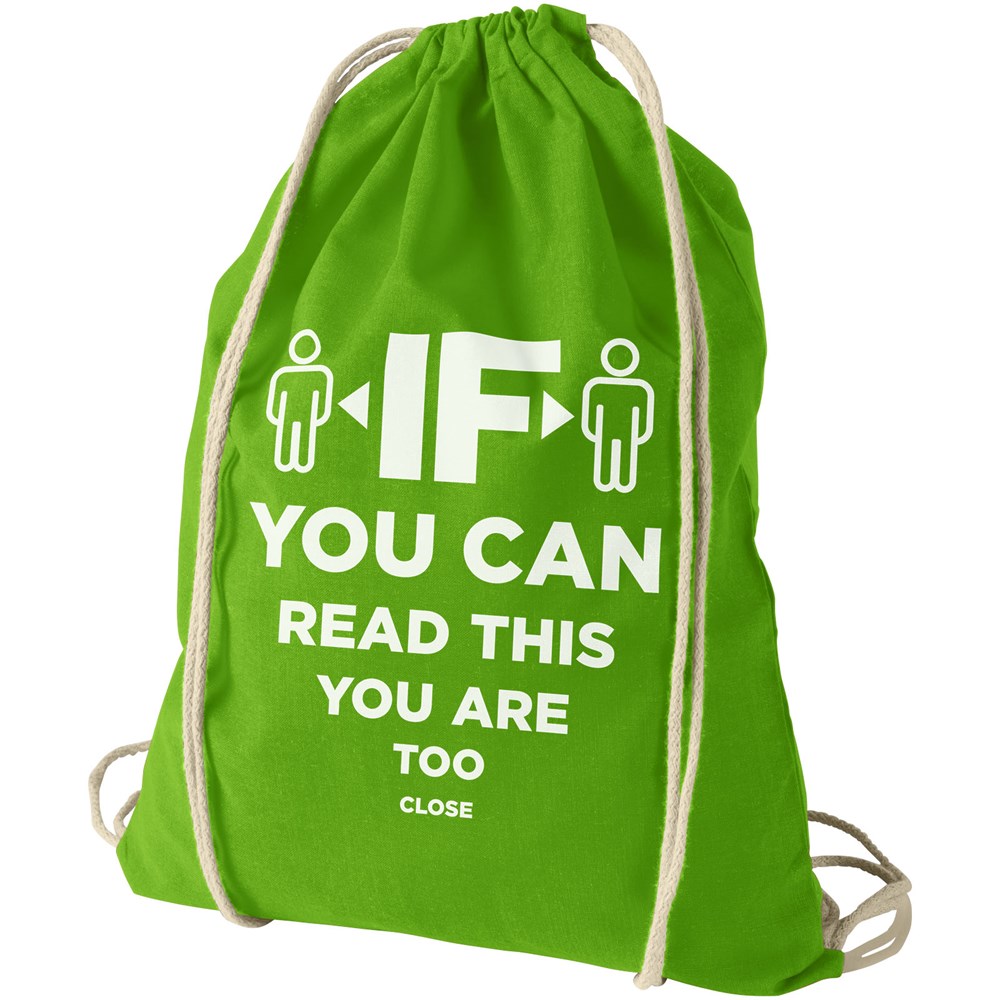 Katoenen tas met groot hoofdvak met katoenen trekkoordsluiting. Als schoudertas en als rugzak te dragen.