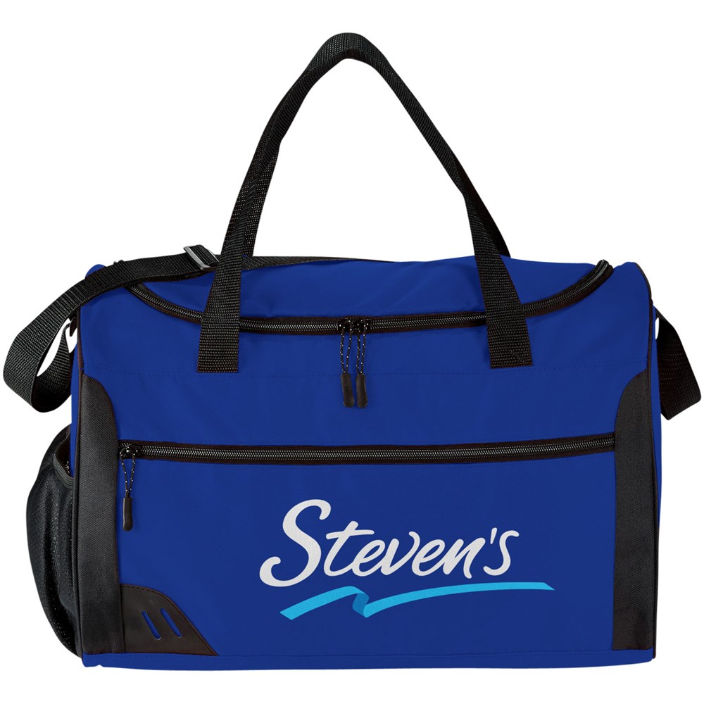 Duffeltas, ideaal voor sport of reizen met bodembeschermplaat. Groot U-vormig vak dat ruim voldoende plaats voorziet voor al je spullen. Inclusief groot voorvak en zijvak om je toebehoren in op te bergen. Handvaten en brede verstelbare schouderriem. PVC vrij.