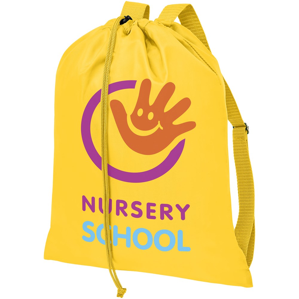 Rugzak met hoofdvak met trekkoordsluiting in bijpassende kleur. Voorzien van grote en verstelbare schouderbanden. Geschikt voor een gewicht tot 5 kg.