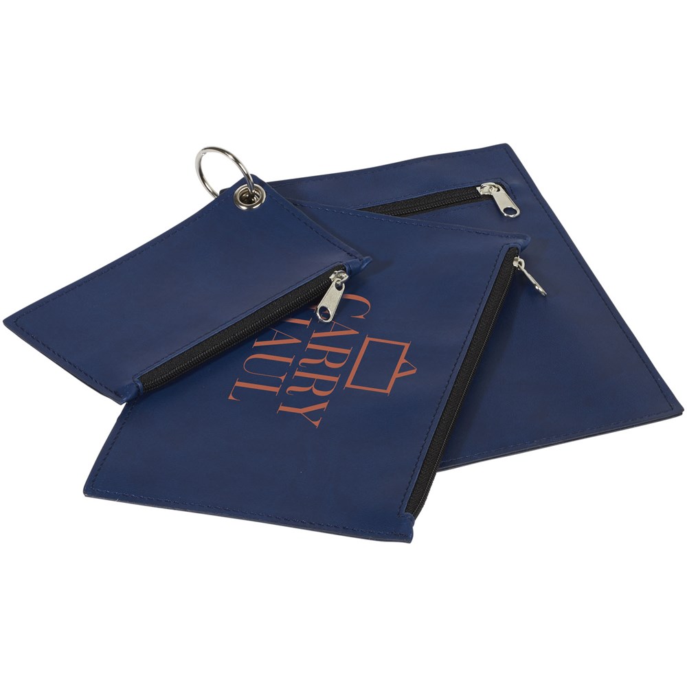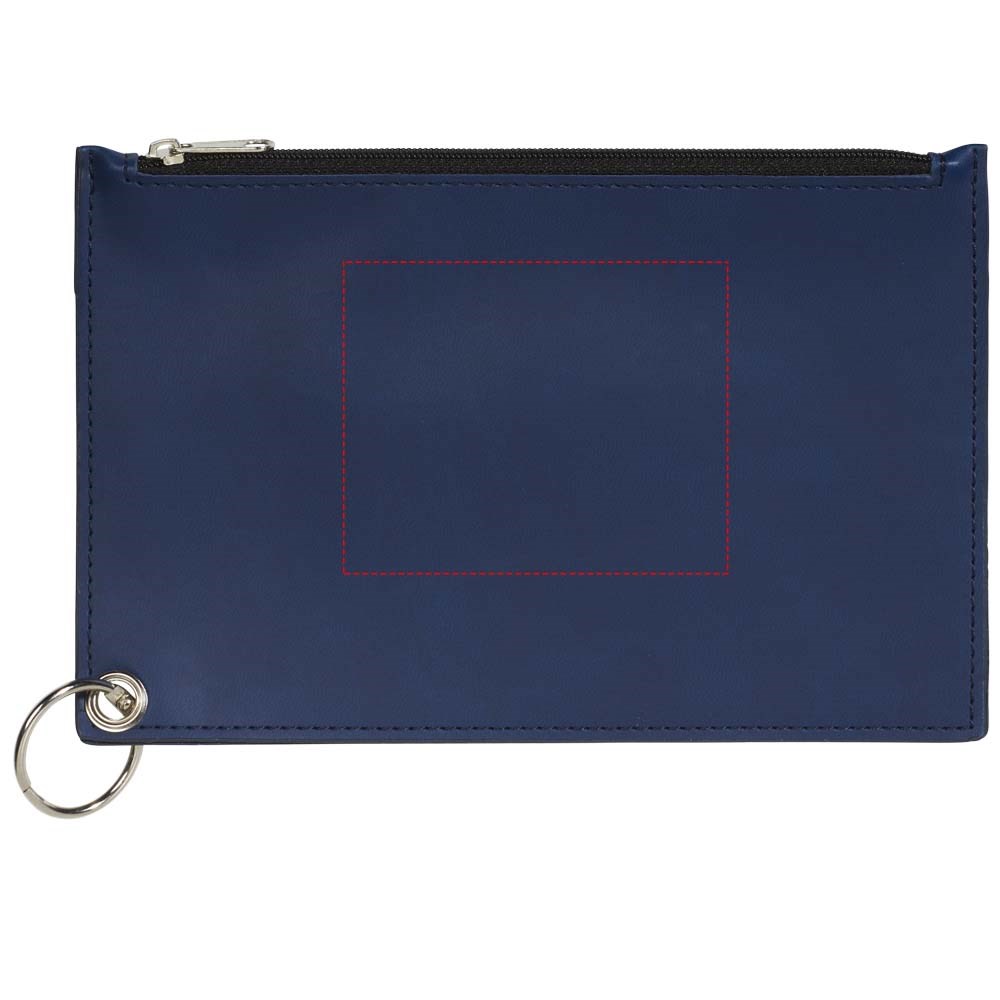 Drie PU tasjes met ritssluiting, bijeengehouden door een sleutelring. Afmetingen van het kleine tasje: 12,5 cm x 7,5 cm. Tasje met lange ritssluiting: 19 cm x 12,4 cm. Tasje met korte ritssluiting: 19 cm x 12,4 cm.