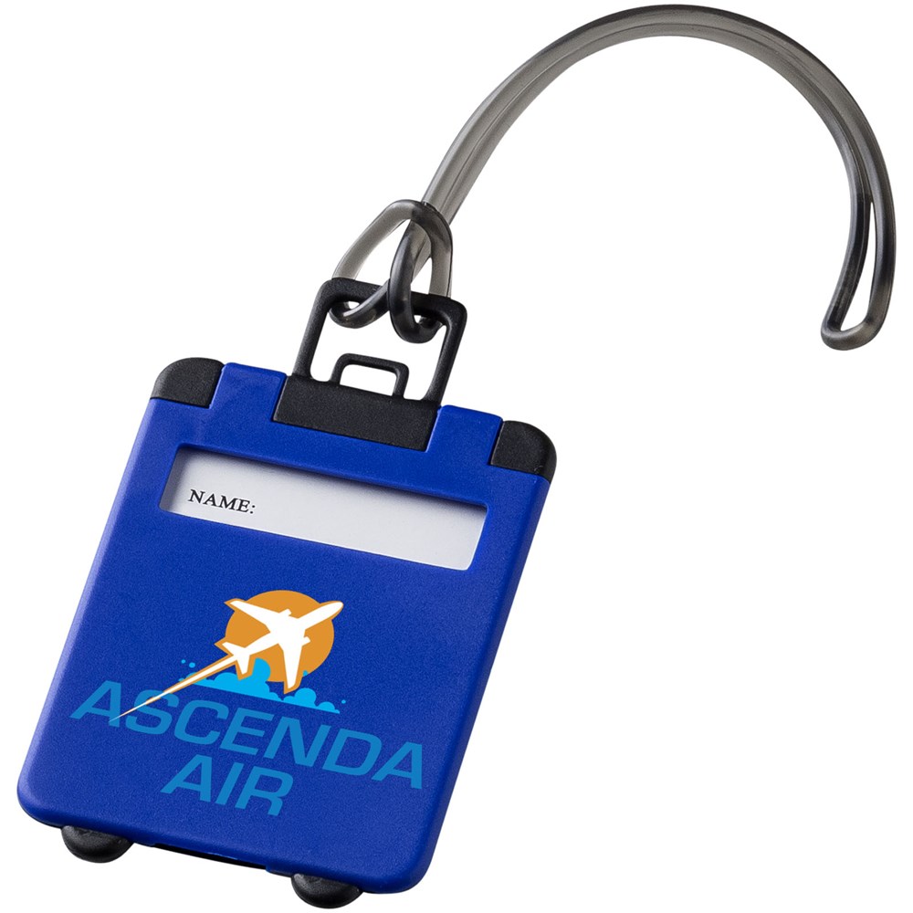 Flip-open identificatielabel met rubberkoord en ID-kaartje.
