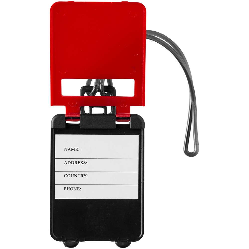 Flip-open identificatielabel met rubberkoord en ID-kaartje.
