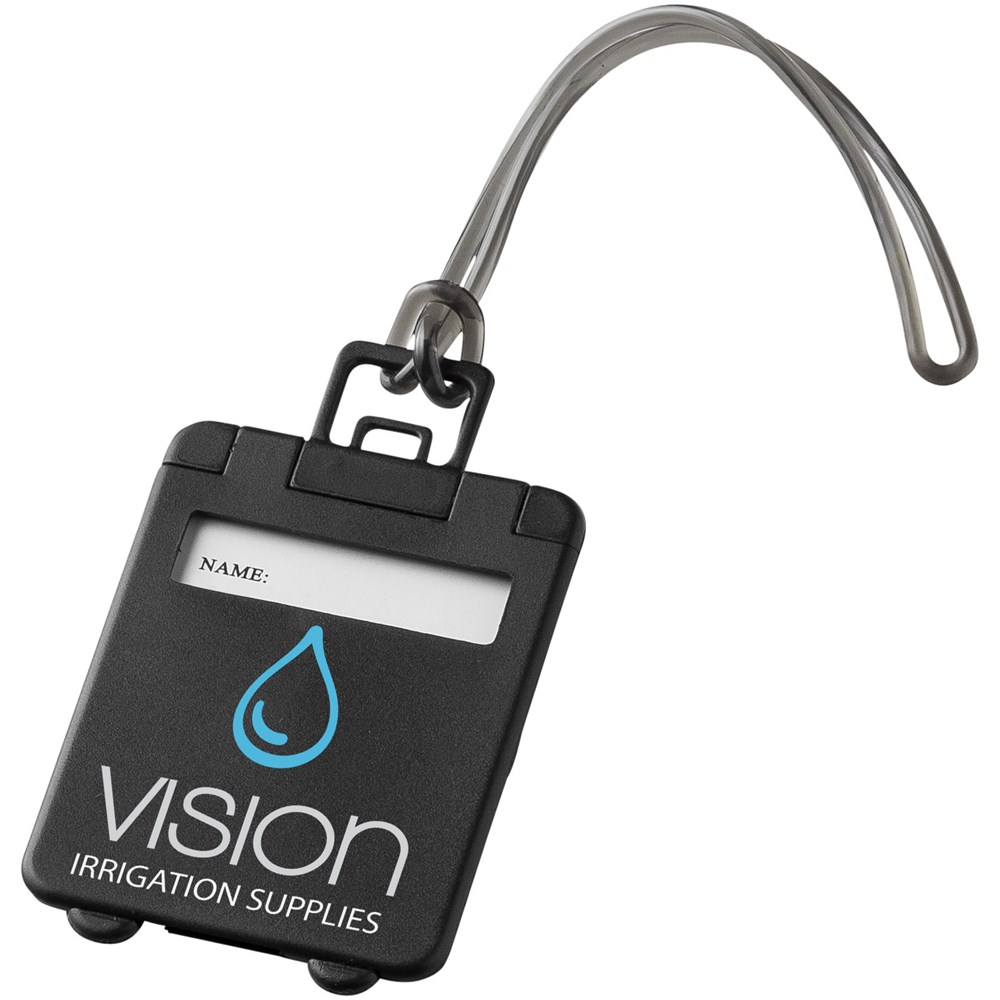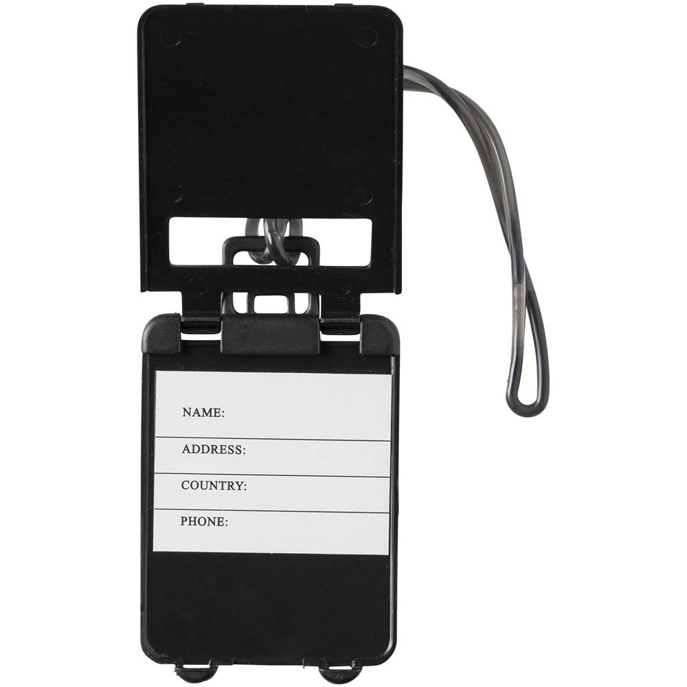 Flip-open identificatielabel met rubberkoord en ID-kaartje.
