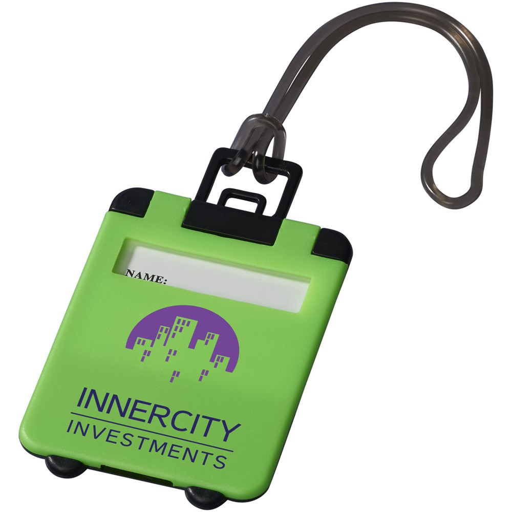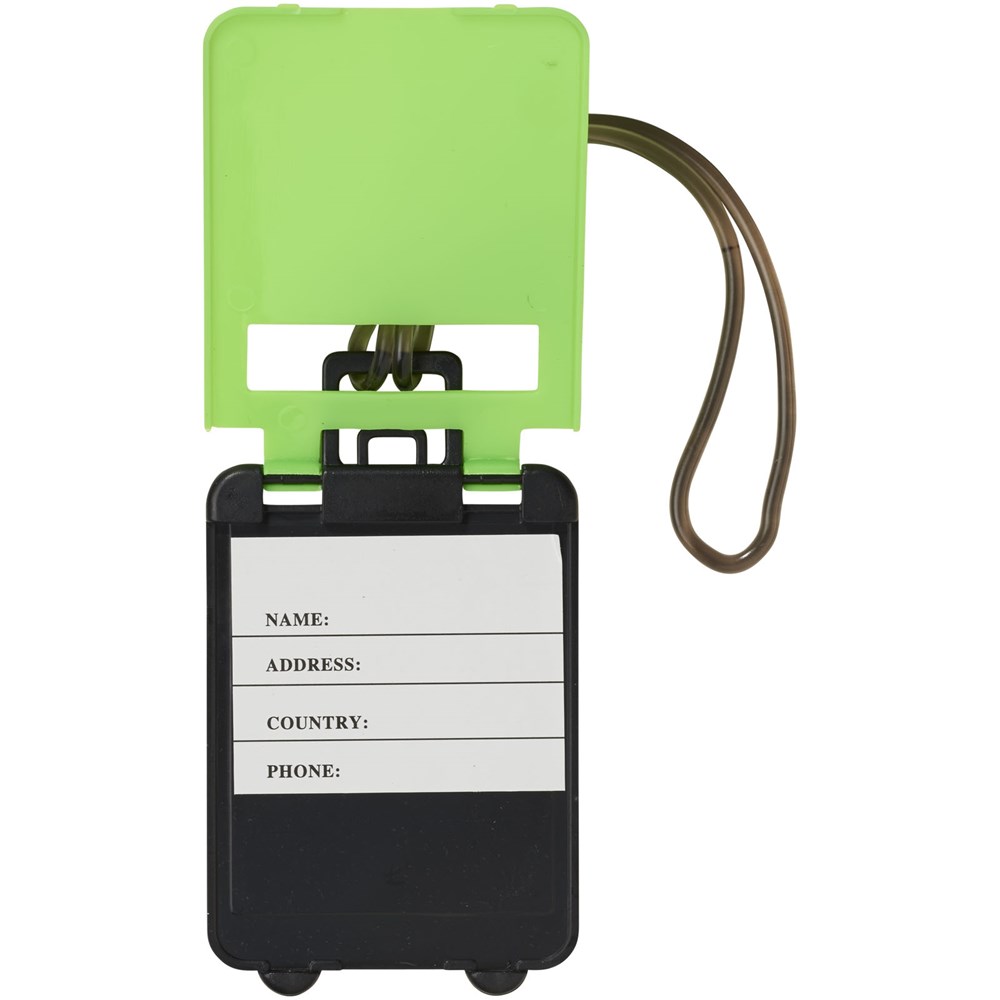 Flip-open identificatielabel met rubberkoord en ID-kaartje.