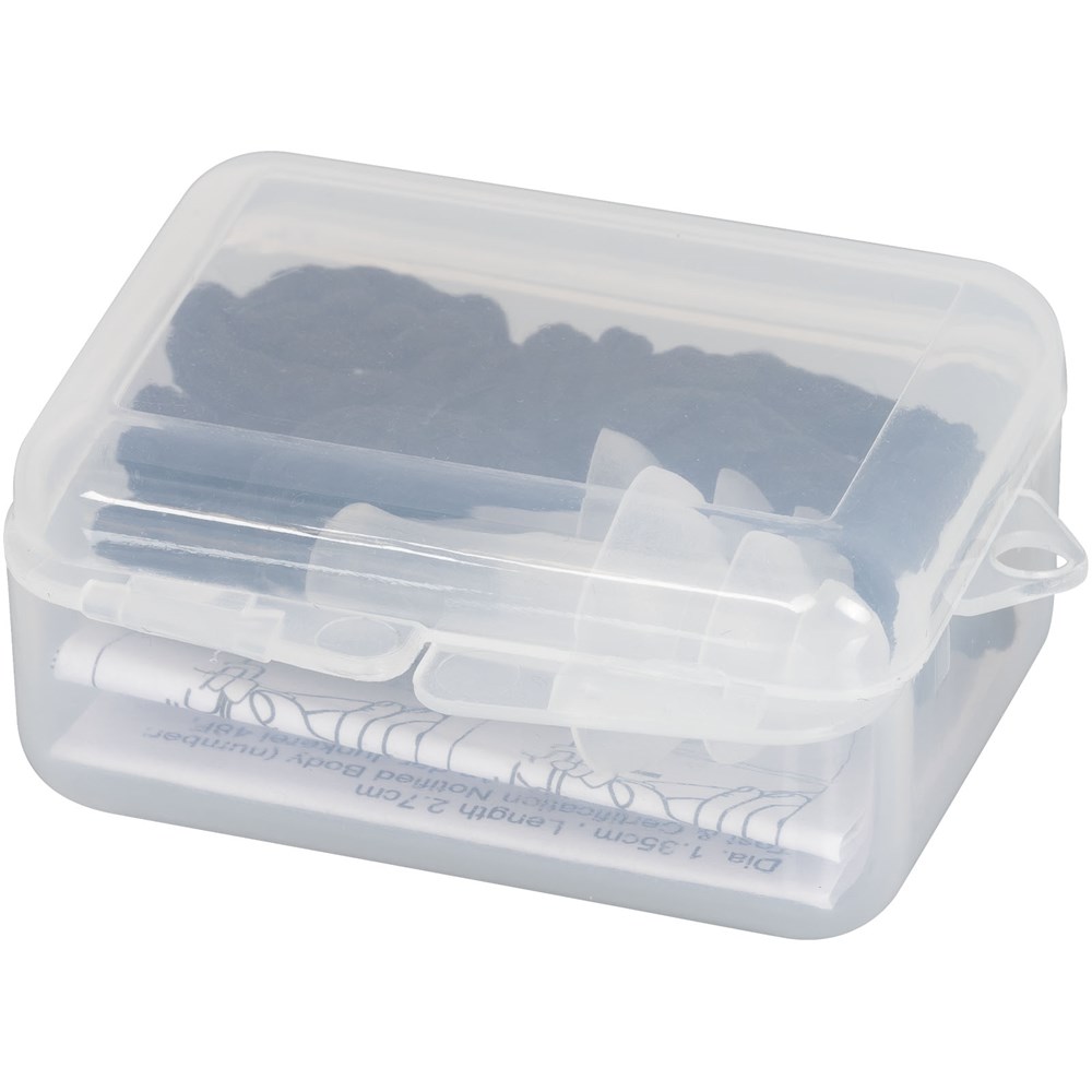 Set van 2 herbruiknare siliconen oordopjes met drievoudige flens en halskoord in PP cassette. Geluidsreductie tot 29dB. Koordlengte: 65 cm. Product voldoet aan EN352 norm.