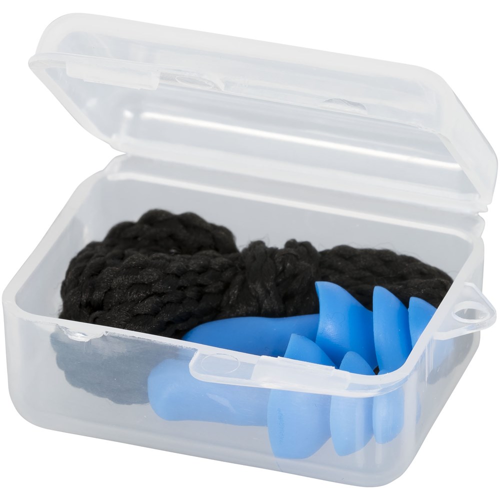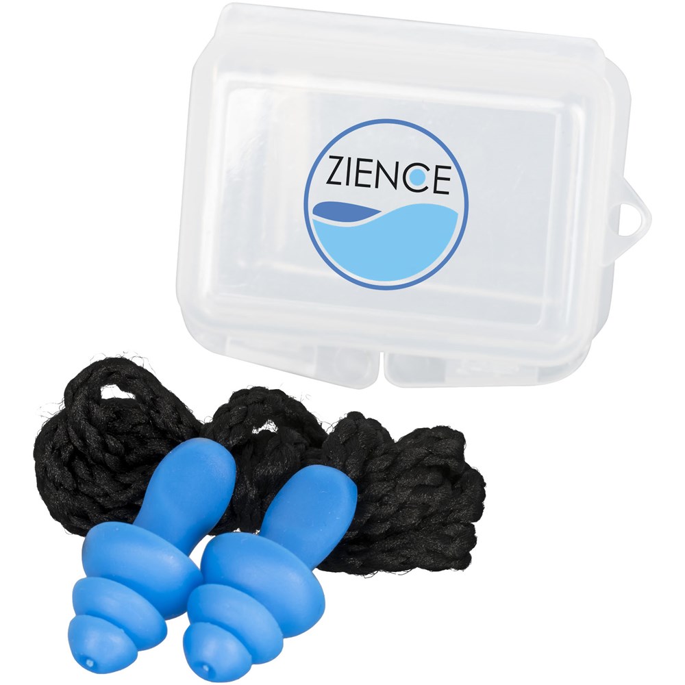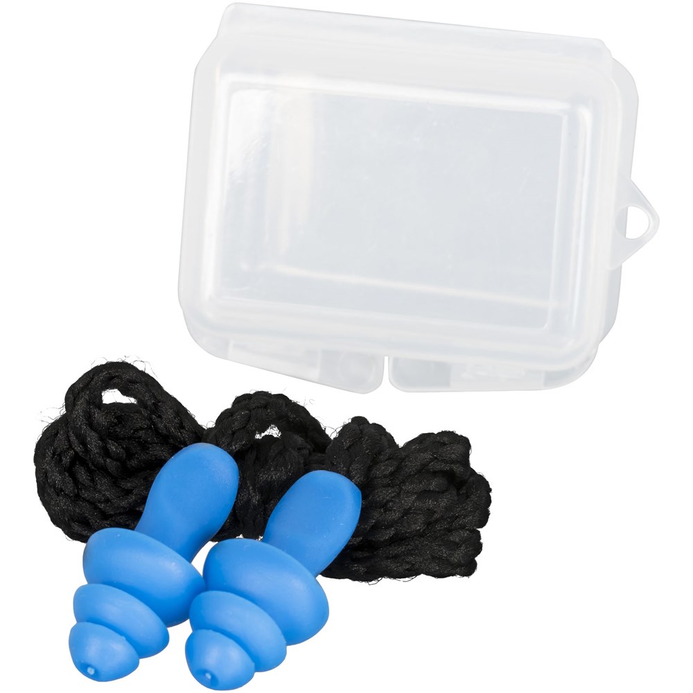 Set van 2 herbruiknare siliconen oordopjes met drievoudige flens en halskoord in PP cassette.... mehr