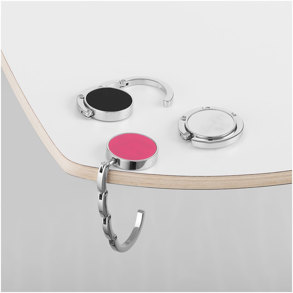 Houd je tas schoon en veilig met deze opvouwbare tashanger die aan de rand van elk oppervlak kan worden gehaakt en maximaal 4,5 kg kan dragen.