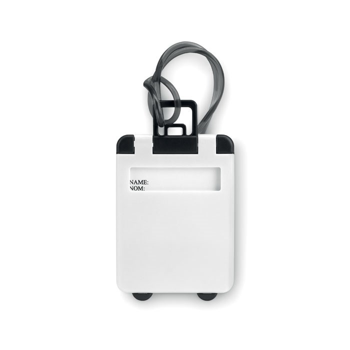 Kunststof bagagelabel in de vorm van een trolley.