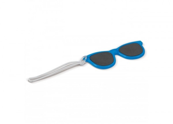 Bagagelabel in de vorm van een zonnebril. Met dit label gaat het zonnetje alvast schijnen op de vakantiebestemming. Een ander voordeel van dit bagagelabel is dat door de unieke vorm bagage snel wordt herkent.