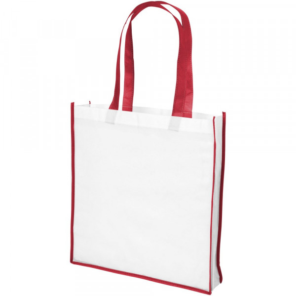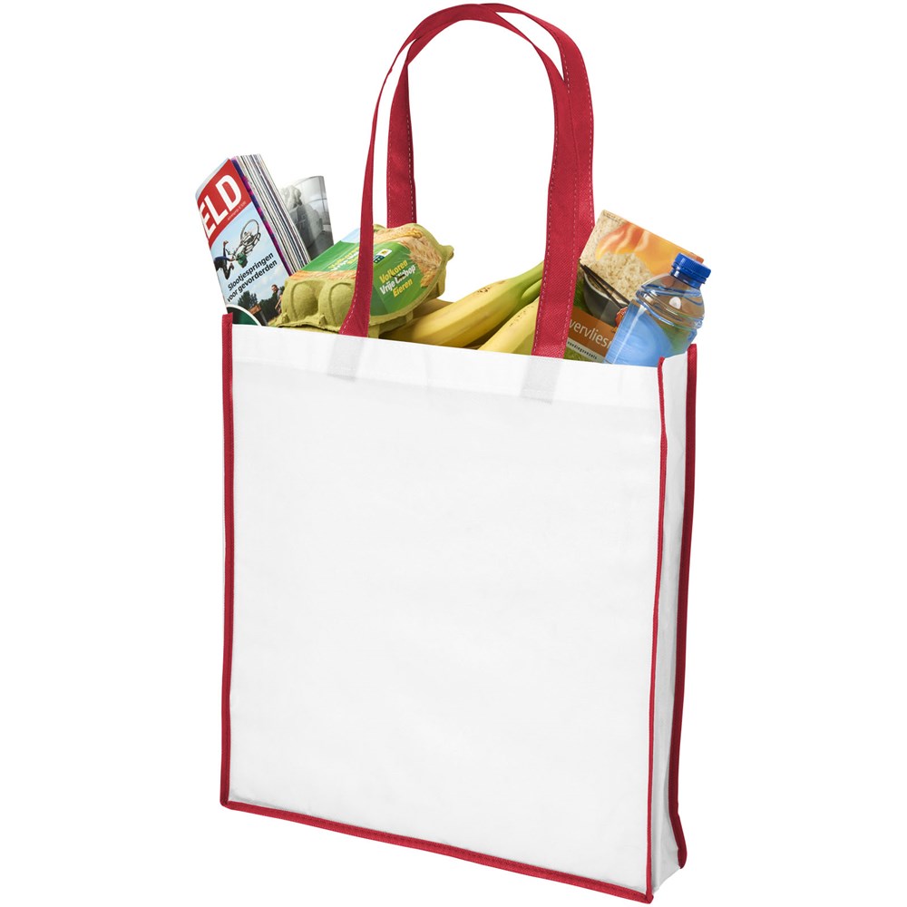 Een boodschappentas gemaakt van wit non woven PP-materiaal met gekleurde hengsels en randen. Fris... mehr