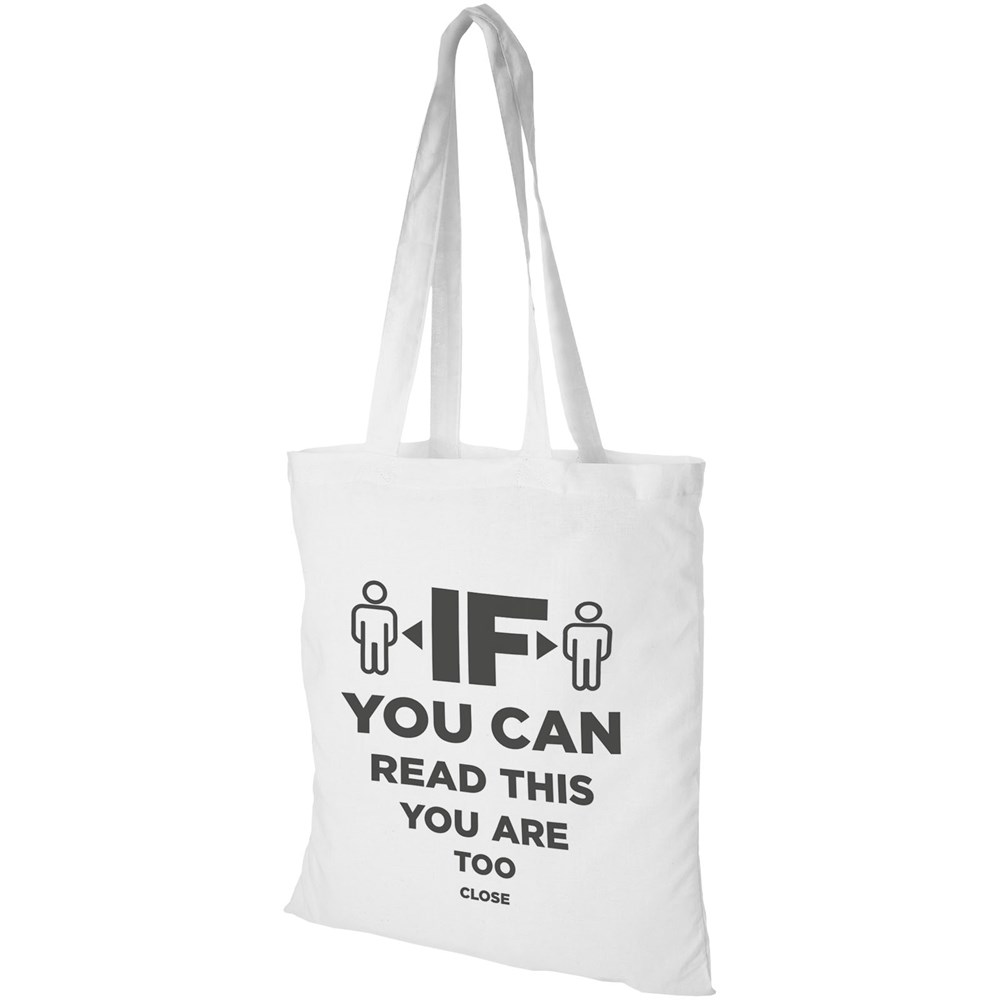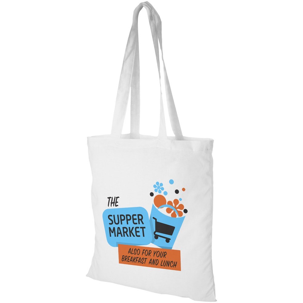 Katoenen draagtas met open hoofdvak. Draaghoogte 30 cm, draagvermogen 5kg.