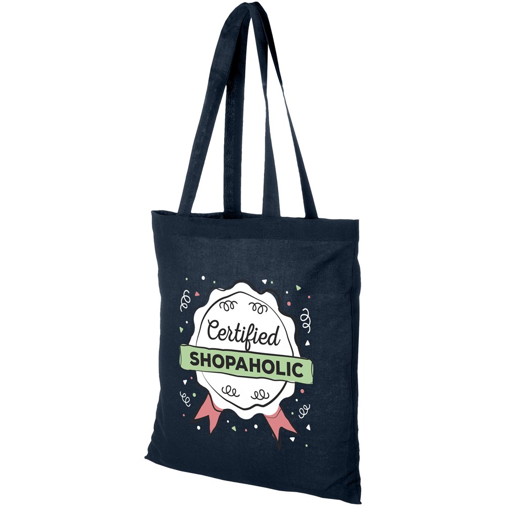 Katoenen draagtas met open hoofdvak. Draaghoogte 30 cm, draagvermogen 5kg.