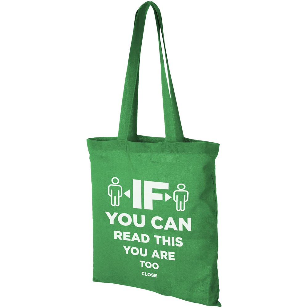 Katoenen draagtas met open hoofdvak. Draaghoogte 30 cm, draagvermogen 5kg.