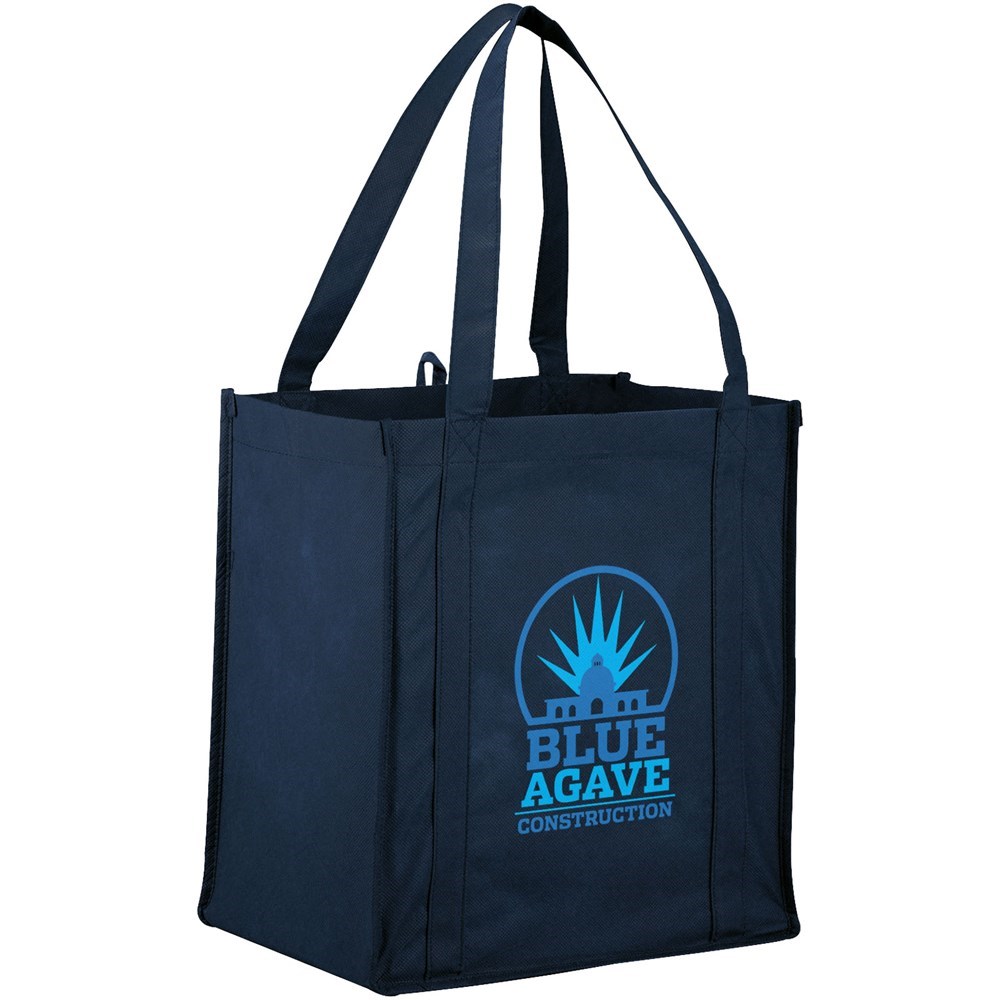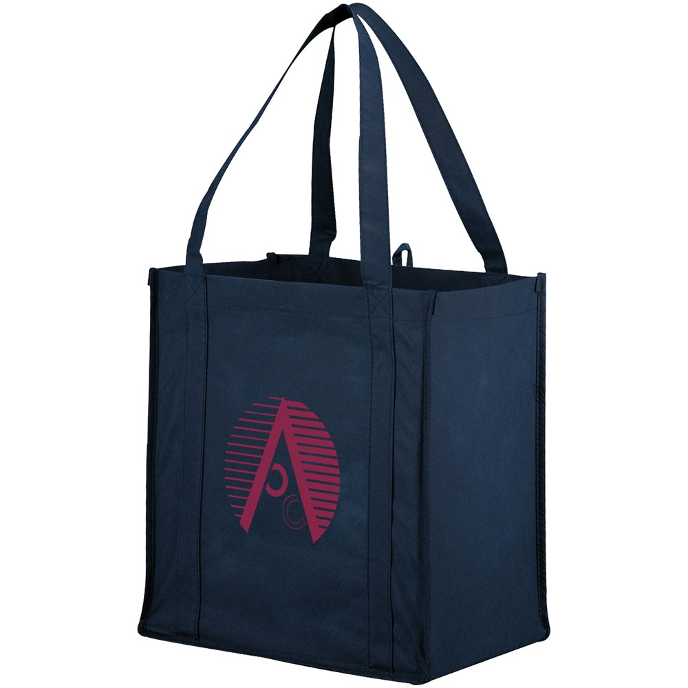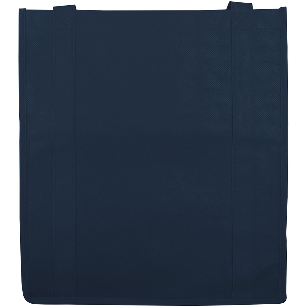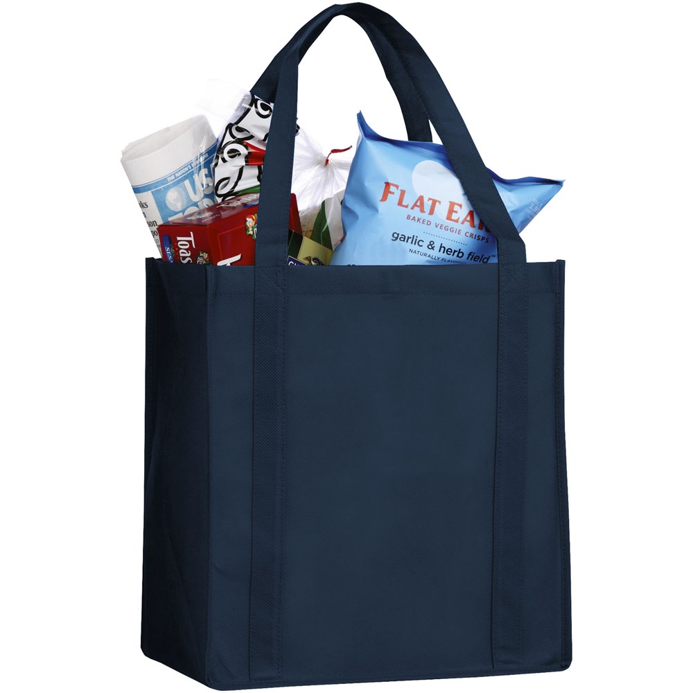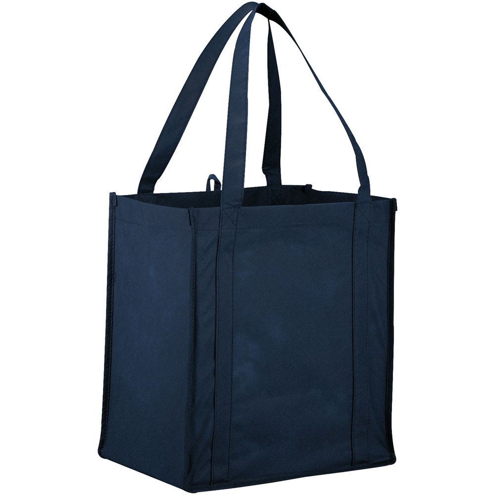 Non woven draagtas met open hoofdvak met verstevigde dubbele handgrepen en een stevige bodemplaat voor extra draagvermogen. Herbruikbaar. Het perfecte alternatief voor de plastic tas.