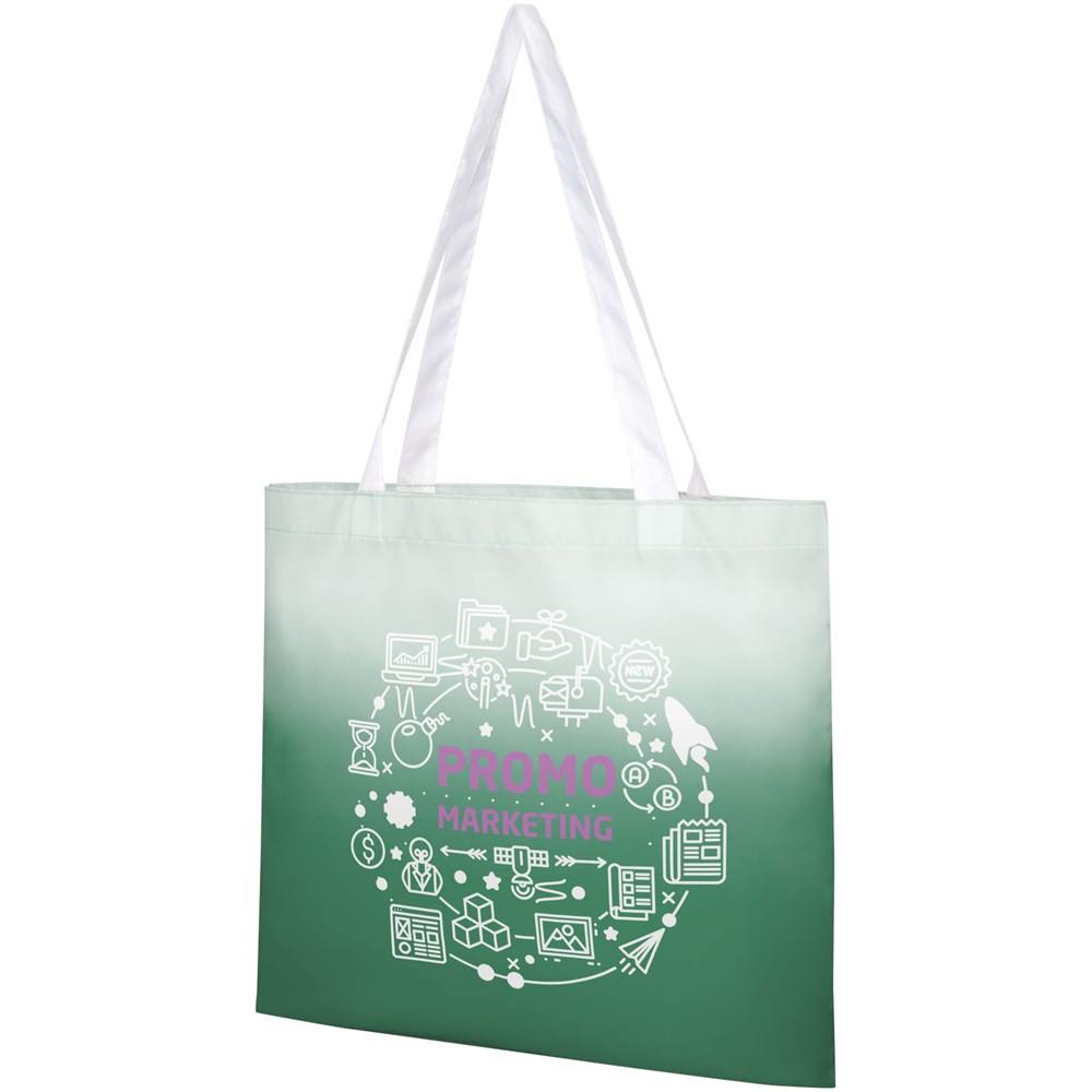 Draagtas ontworpen met geleidelijk verlopend kleureffect, met twee handgrepen en een dropdown hoogte van 27 cm.
