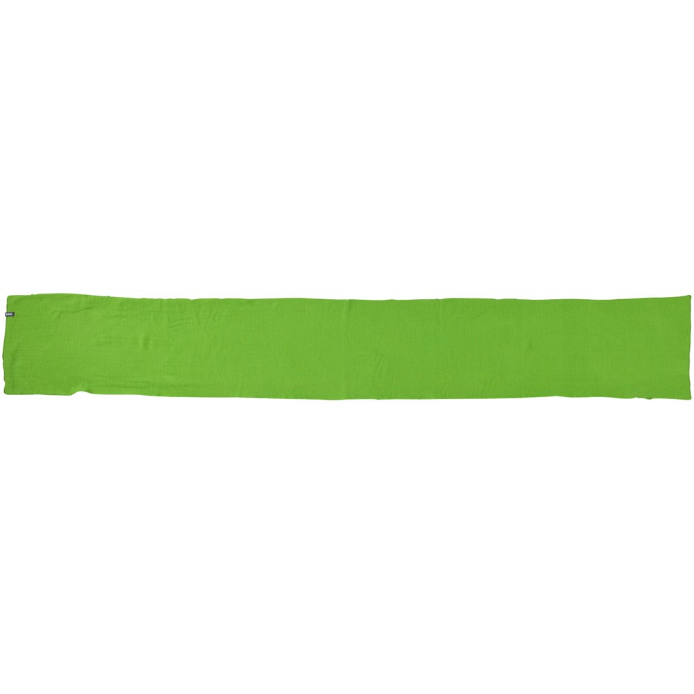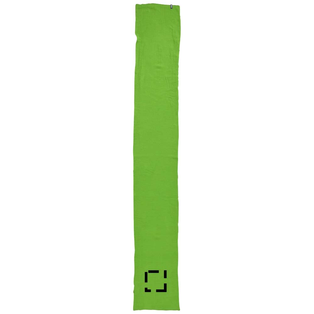 Dubbellaags sjaal. Naadloos cirkelvormig breisel. Luslabel met merknaam.