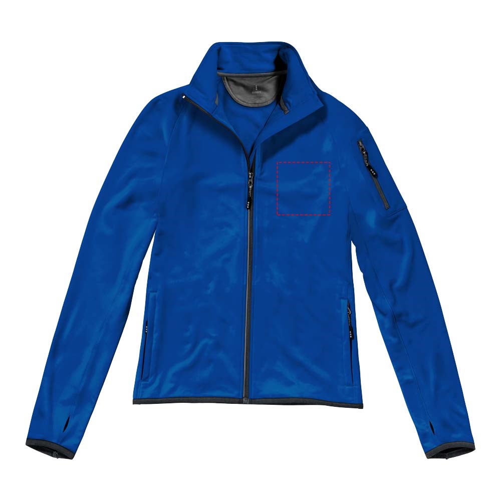 Stretchstof in alle alle richtingen. Duimsgaten. Reflecterende details. Stormflap aan binnenzijde met kinbescherming. Interne media zak. Elastische binding. Voorzakken met rits. Zak met rits op de mouw. Satijnen nektape. Contrast gekleurde halve maan.