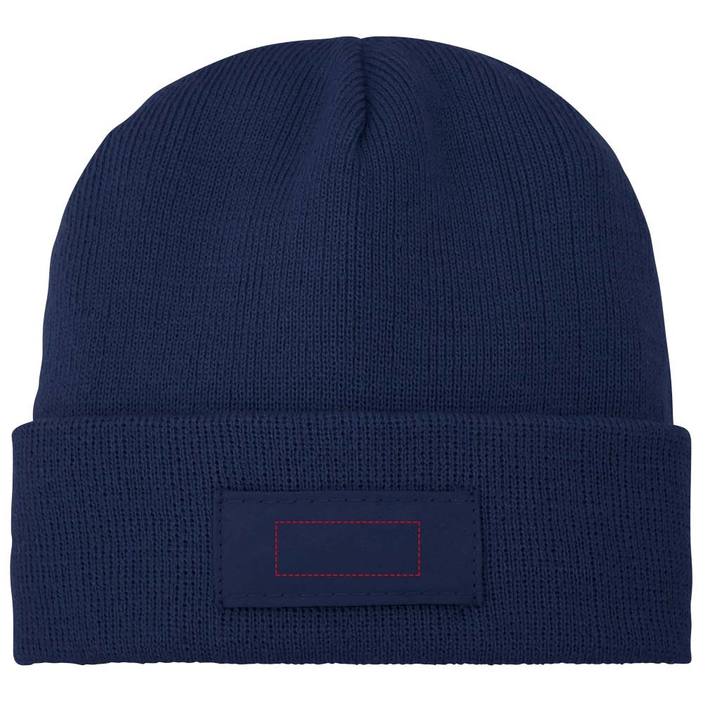 Enkellaags beanie met dubbel gevouwen rand. Patch voor decoratie.