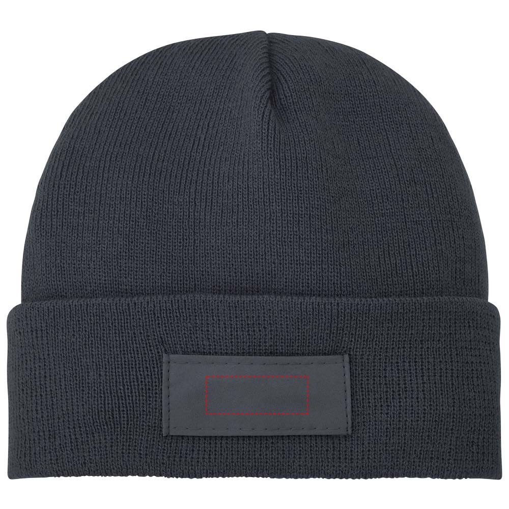 Enkellaags beanie met dubbel gevouwen rand. Patch voor decoratie.