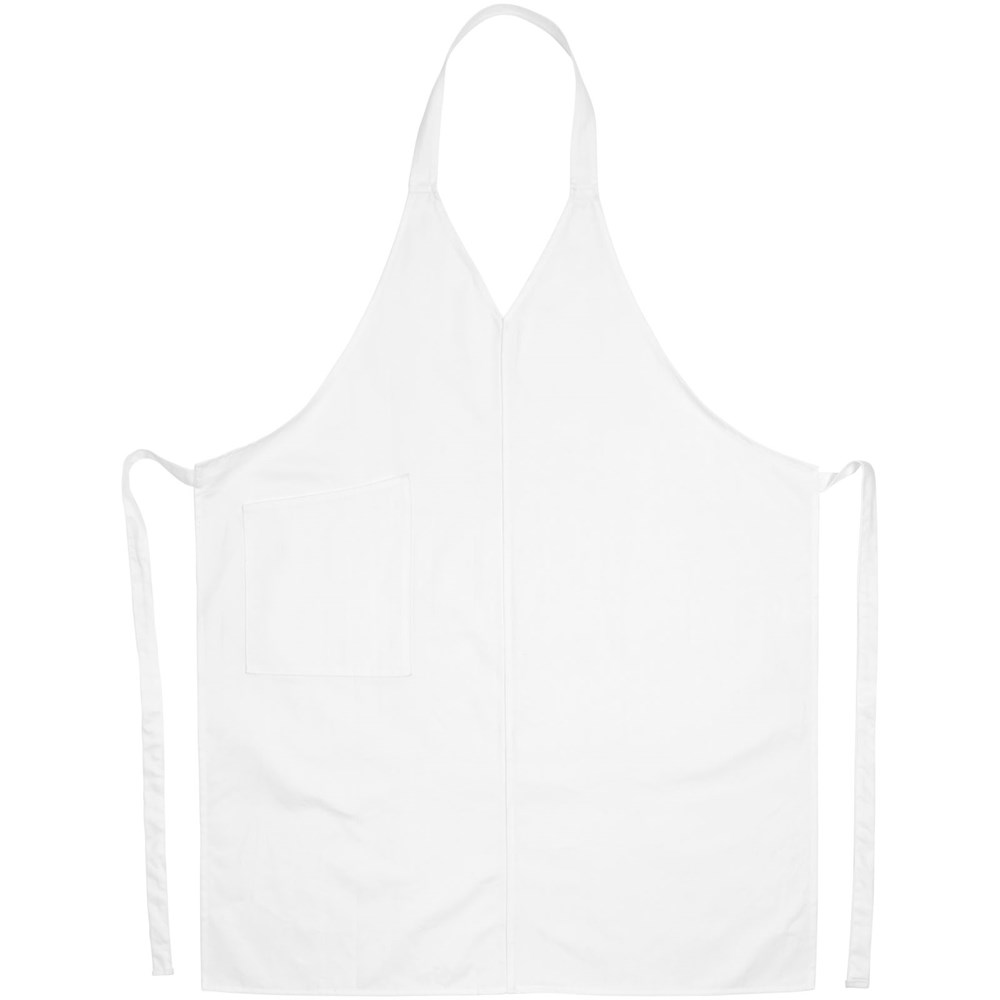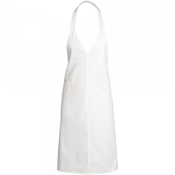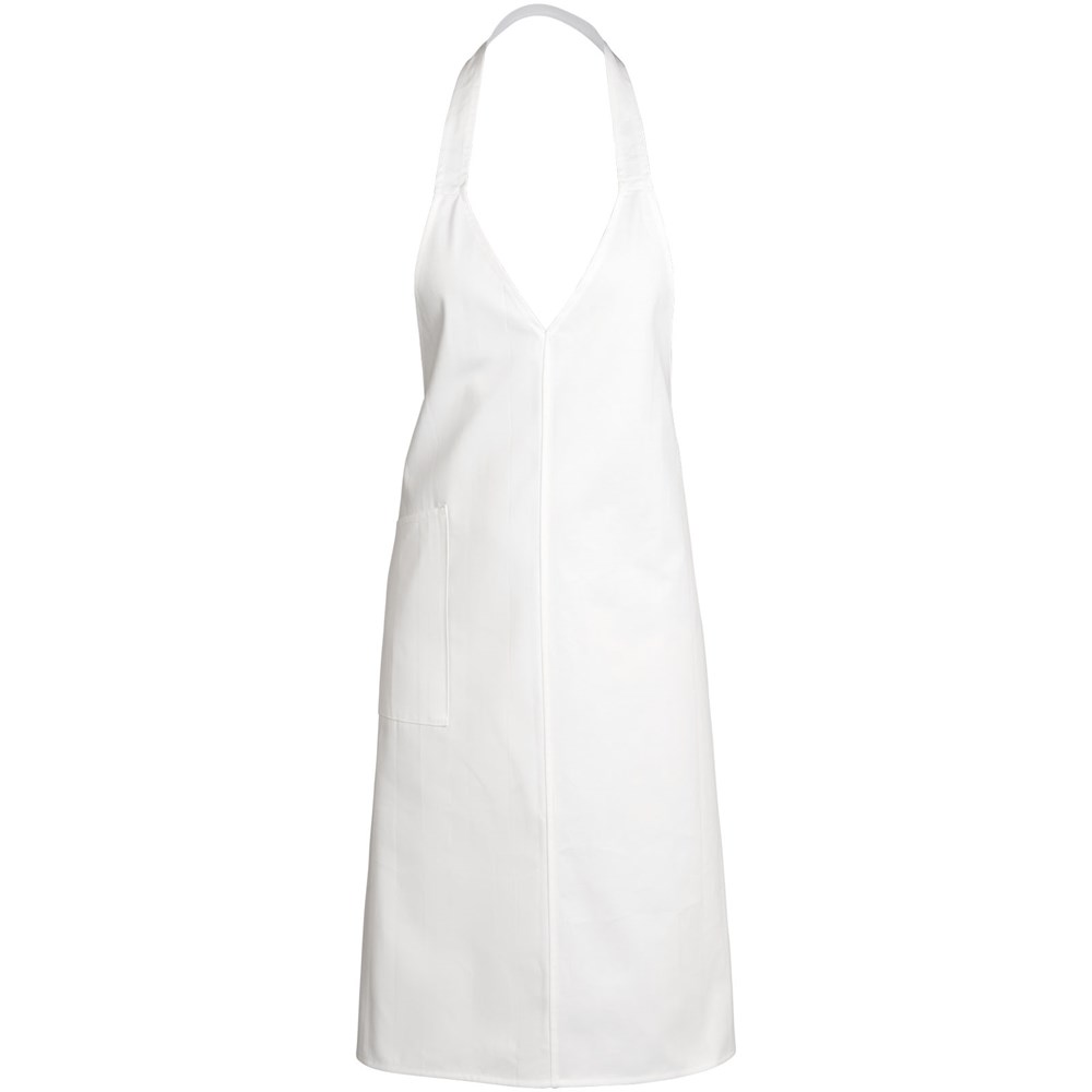 Twill schort met v-hals, met 1 zak en een terugbindsluiting. Gemaakt van 90% polyester en 10% katoen.