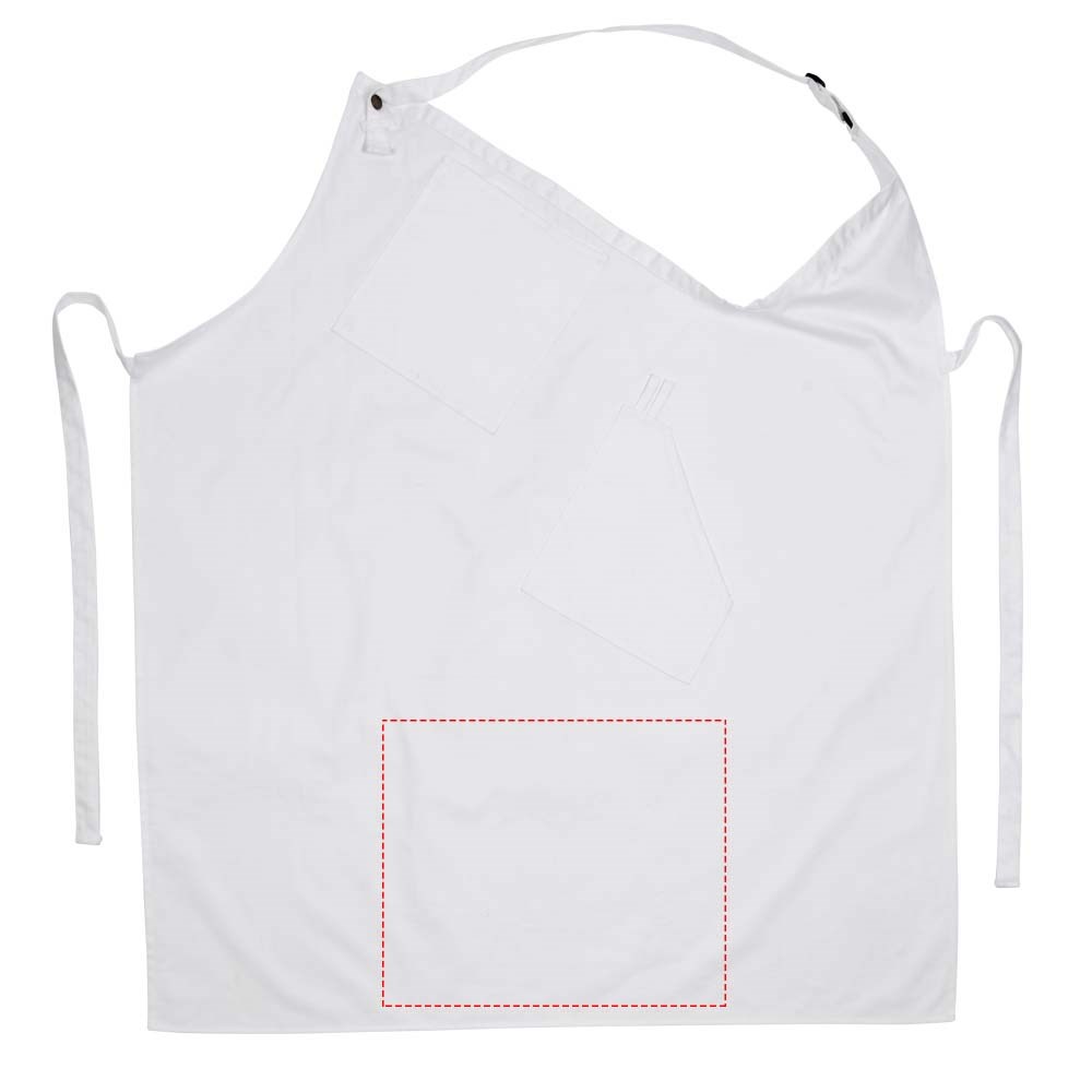 Twill asymmetrisch schort met verstelbare riem, 2 zakken, een handdoeklus en terugbindsluiting. Gemaakt van 65% polyester en 35% katoen.