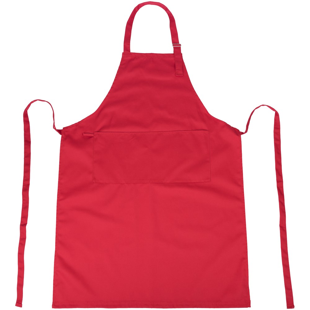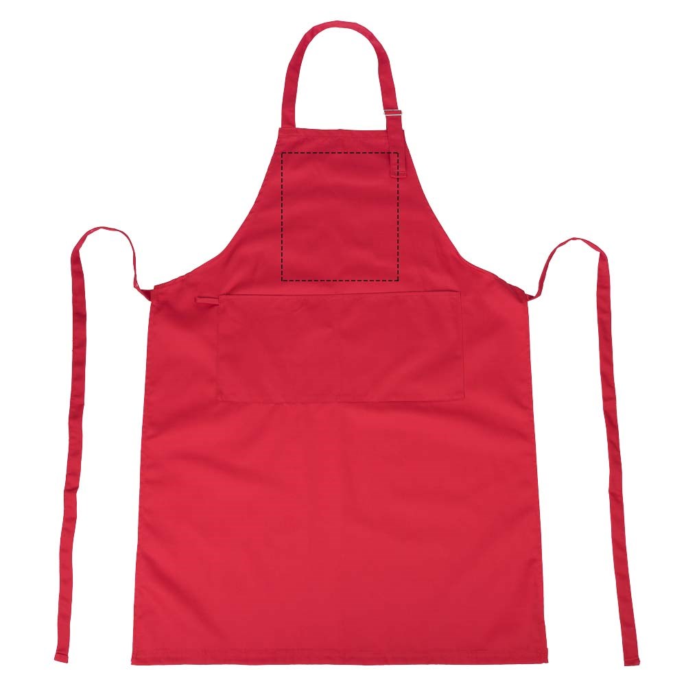 Verstelbaar schort met gesp rond de nek en sluitband. Inclusief twee zakken aan de voorkant en een handdoek lus.