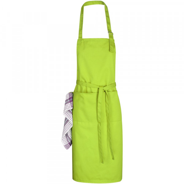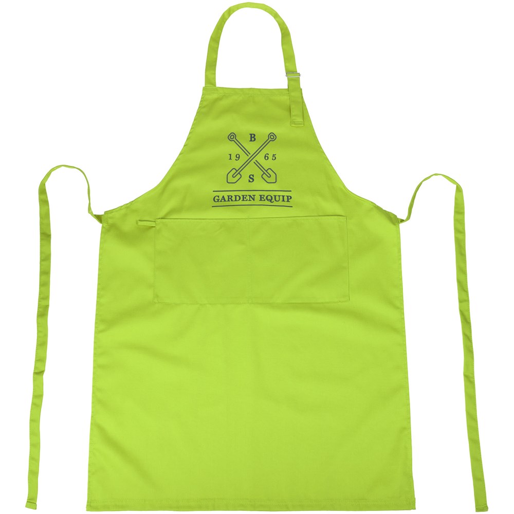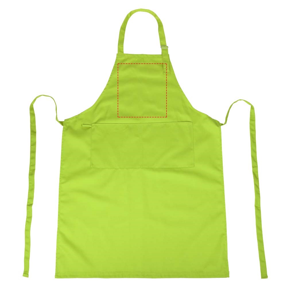 Verstelbaar schort met gesp rond de nek en sluitband. Inclusief twee zakken aan de voorkant en een handdoek lus.
